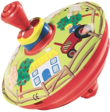 Šis tradicionālais mūzikas virpulis ar lauku sētas motīvu ir ideāla rotaļlieta pašiem mazākajiem. Vienkāršais sviras nospiešanas mehānisms iegriež virpuli, kas griežoties rada raksturīgu skaņu un vizuālus stimulus.