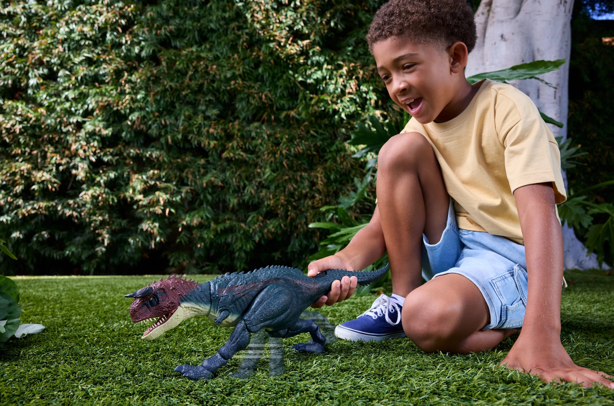 Teksturēta āda, ragi un filmu iedvesmotas Jurassic World krāsas padara Carnotaurusu par saistošu figūru gan spēlei, gan kolekcionēšanai.