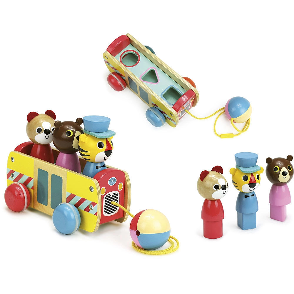 Šis velkamais autobuss ir izgatavots no kvalitatīva koka un piedāvā ne tikai izklaidi, bet arī izaicinājumu mazajiem domātājiem. Ar spilgtām krāsām un dzīvnieciņiem, kurus var ievietot un izņemt, tas atbalsta bērna attīstību vairākās jomās: