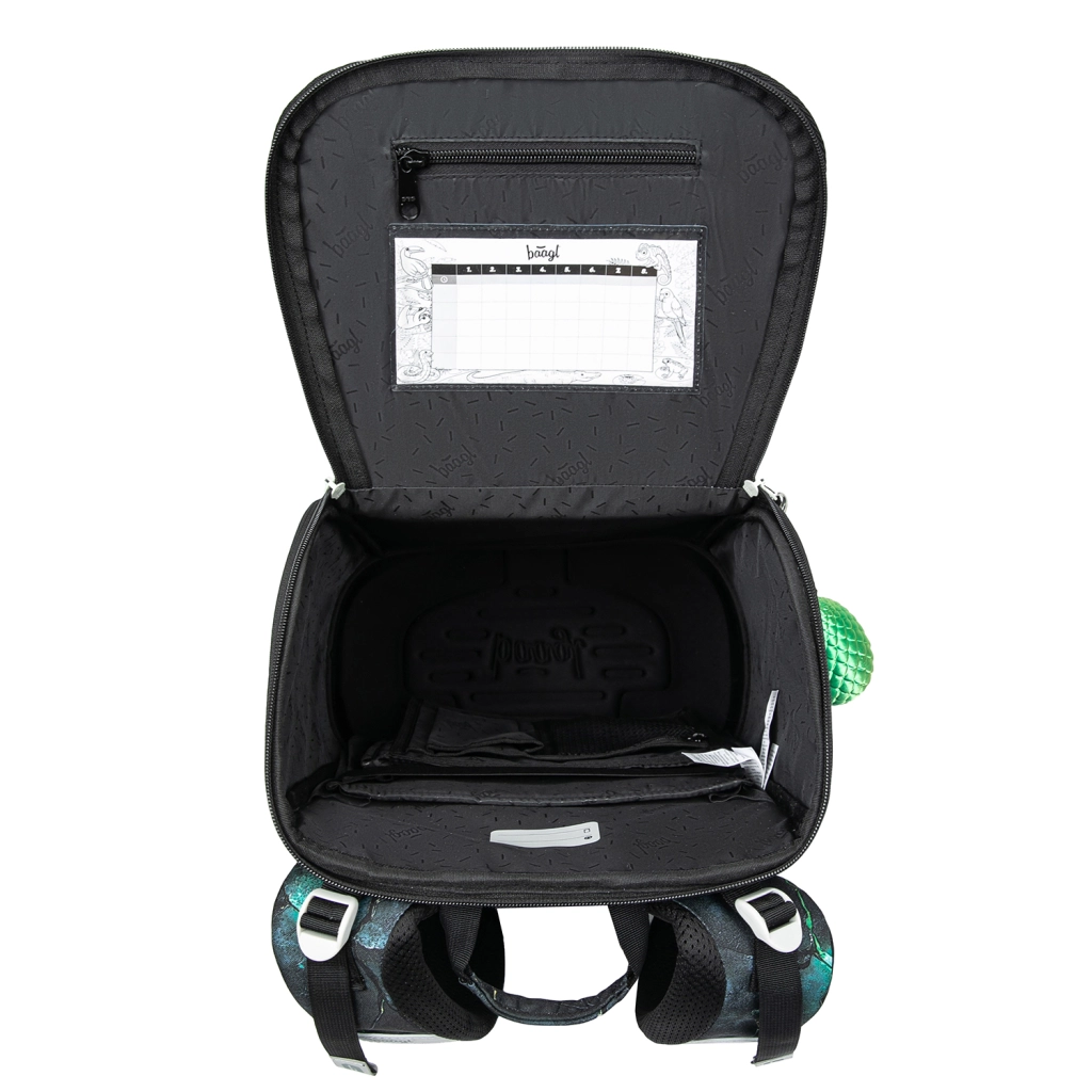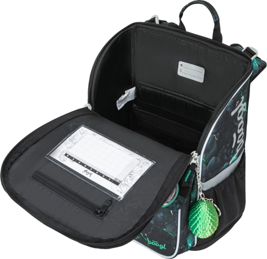 Izliekamā atvēršanas sistēma ļauj bērnam ērti aizsniegt piederumus tieši no sola. Iekšpusē ir gumija mācību grāmatu fiksācijai un praktisks dalījums pārskatāmās nodalījumos.