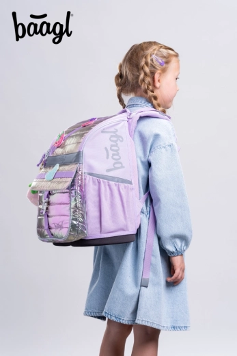 Pilnais skolas ekipējums vienotajā Lavender dizainā apvieno komfortu, drošību un pārdomātu organizāciju. Ergonomiskā BAAGL Zippy soma ar bīdāmo ERGO ADJUSTABLE sistēmu pielāgojas bērna augumam, un pateicoties pastiprinātai konstrukcijai, stingrai apakšai un ūdensizturīgam materiālam iztur arī intensīvas skolas dienas. Komplektā ir ietilpīgs penālis, auklu maisiņš sportam, maks sīkumiem un aizsargveste/priekšauts skolas projektiem.
