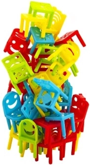 Nepadīgi krēsli ir lieliska līdzsvara galda spēle bērniem no 5 gadu vecuma, kas piedāvā vairākas spēles variācijas. Komplektā ir 32 plastmasas krēsliņi un 8 galdiņi plašākām spēlēšanas iespējām. Spēlēšana tikai ar vienu roku vai pašu izdomātu noteikumu veidošana sniedz papildu izaicinājumus un izklaidi: