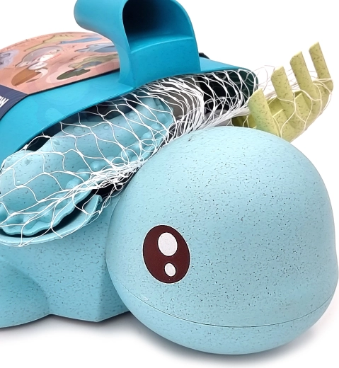 - Bruņurupucītis–glabāšanas kaste, karote/kauss, lejkanna, 3× formiņa, lāpstiņa, grābeklis, ūdens ratiņš ar piesūcekņiem