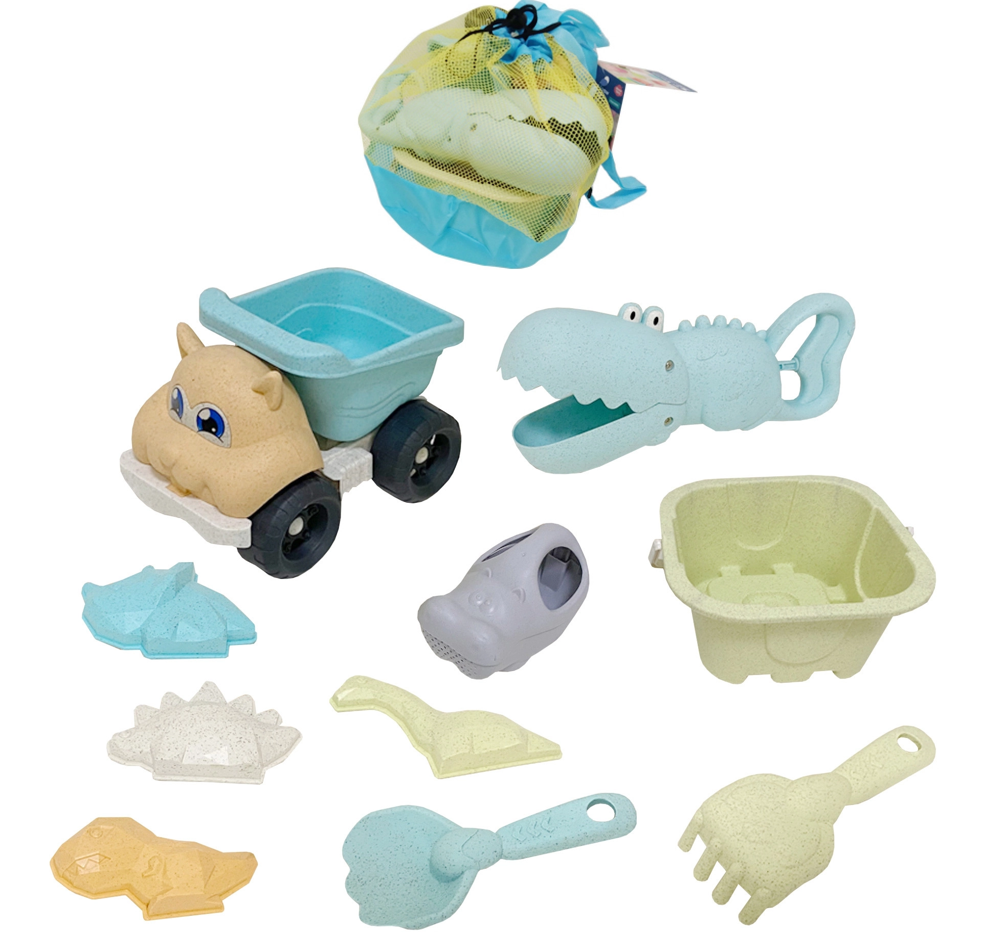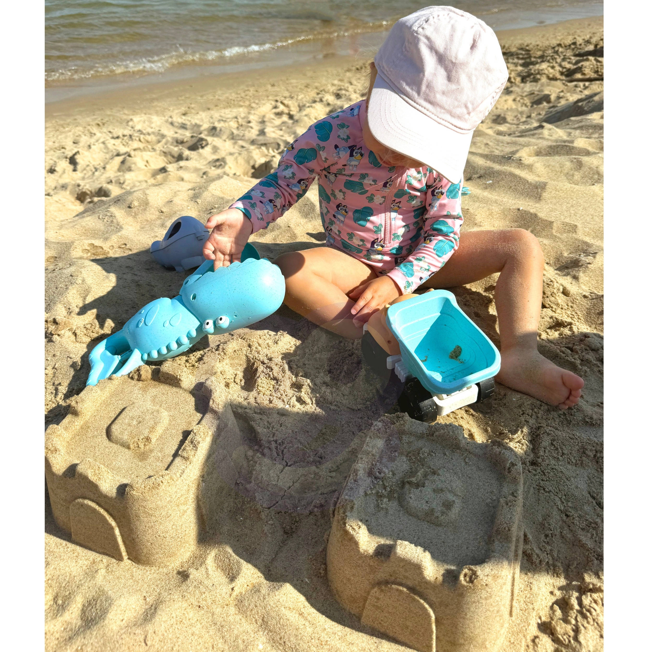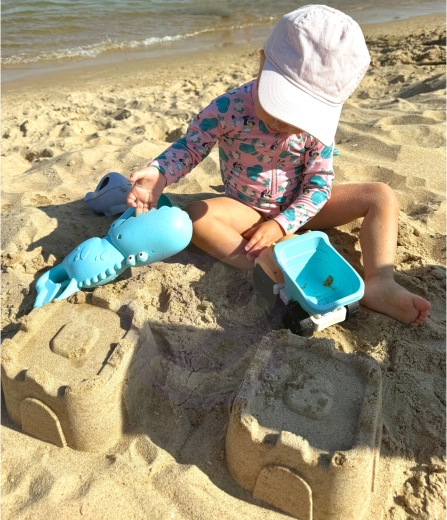 Komplekts veicina bērnu motorikas, acs–roka koordinācijas, iztēles un telpiskās domāšanas attīstību. Ar mazauto, krokodila tvērēju un formiņām bērni būvē pilis, sijā un ber smiltis, kā arī ved “kravas”. Visas detaļas ir vieglas, ar iemīļotām dzīvnieku formām un draudzīgām aprisēm drošai spēlei.