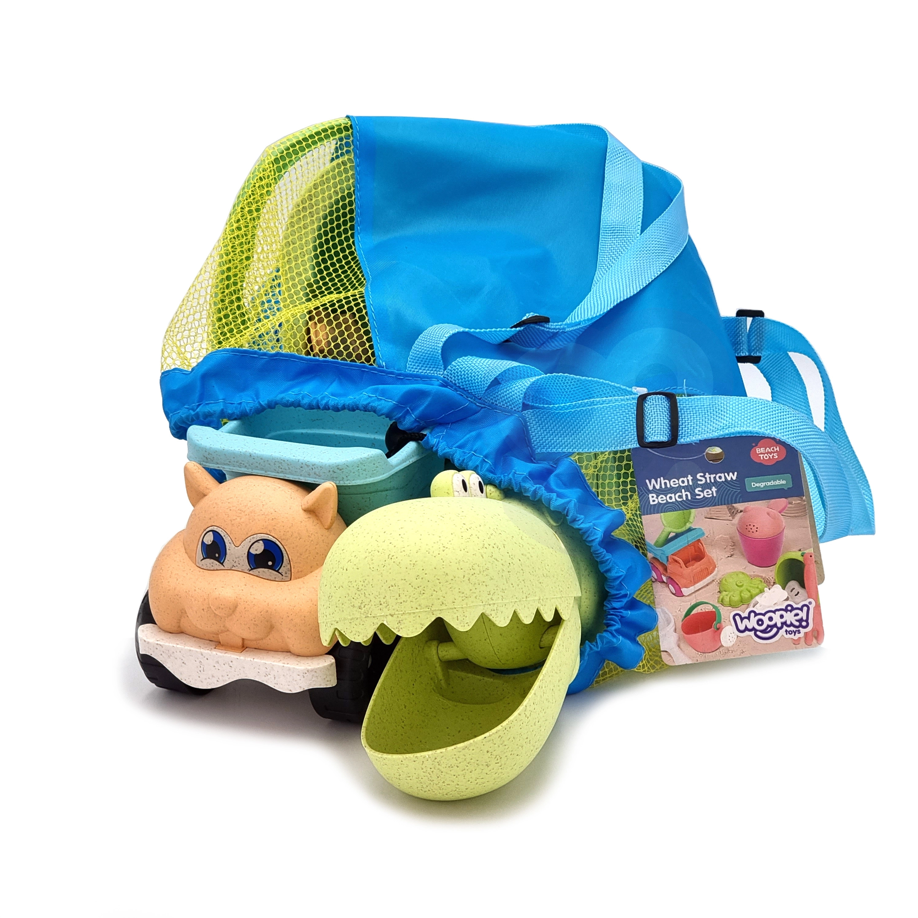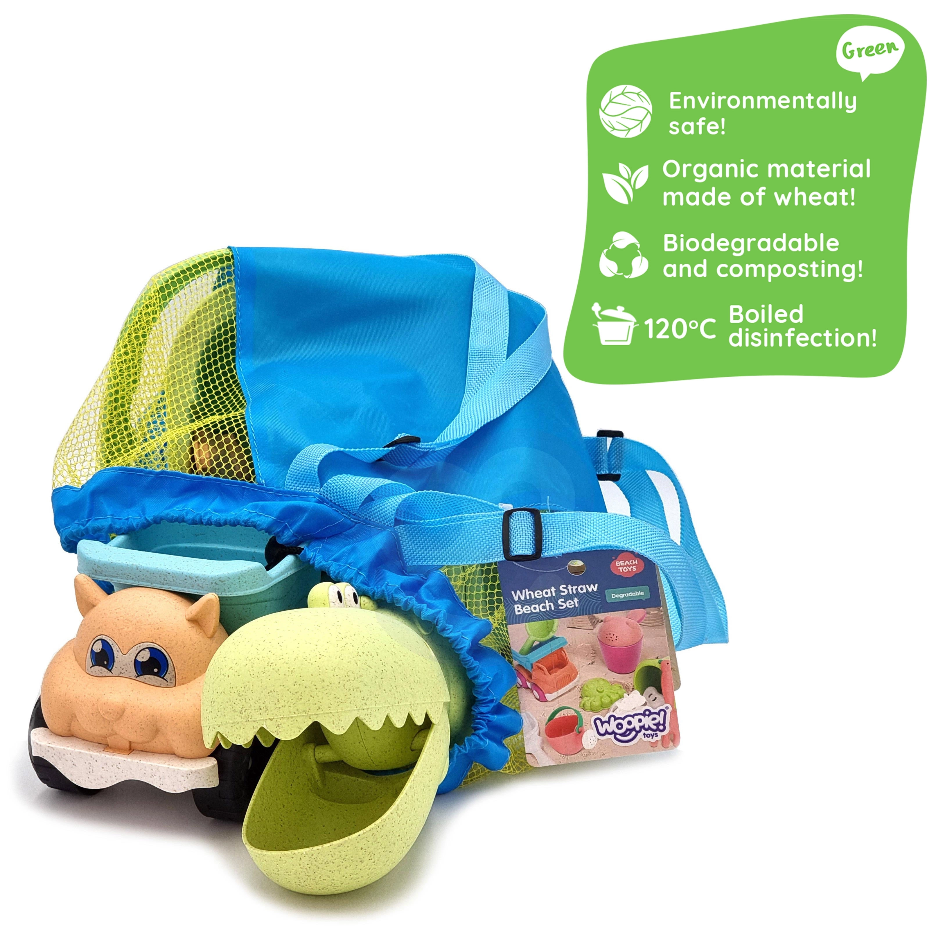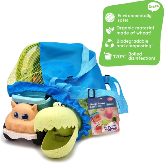 Atklājiet ilgtspējīgu izklaidi ar WOOPIE GREEN komplektu modernās pasteļkrāsās. Organiskais materiāls uz kviešu šķiedru bāzes ir bioloģiski noārdāms un kompostējams, tāpēc bērni izbauda veidošanu, bet jūs – labsajūtu par rūpēm pret dabu. Gaisīgā sieta mugursoma atvieglo pārnēsāšanu un rotaļlietu žāvēšanu pēc spēlēm pie ūdens.