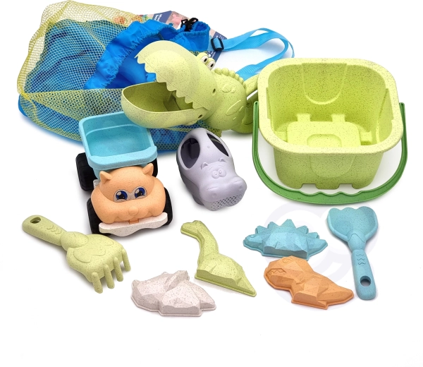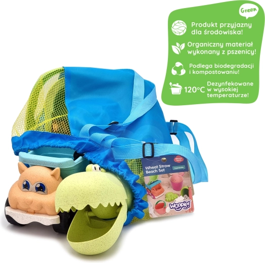 Ekoloģiskais smilšu komplekts WOOPIE GREEN bērniem piedāvā visu radošai spēlei smiltīs un pie ūdens: 10 detaļas, ērts spainis ar rokturi, laistāmā kanna, formiņas, krokodila lāpstiņa, grābeklis un mazais auto. Izgatavots no organiska, bioloģiski noārdāma materiāla un piegādāts praktiskā mugursomā. Drošs bērniem, dezinficēts pie 120 °C, ideāli piemērots pludmalei, smilšu kastei un dārzam.