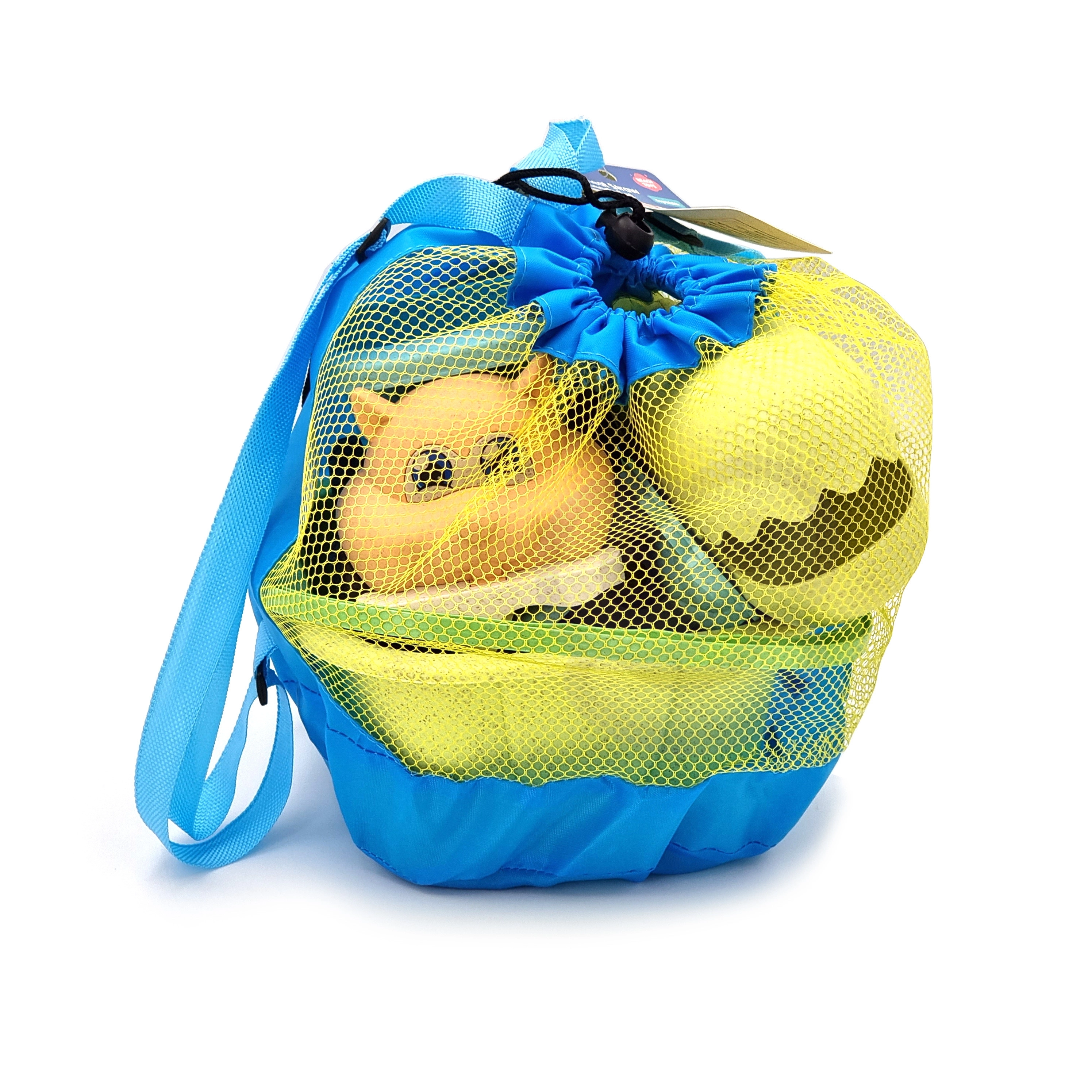 Vieglais sieta maiss kalpo kā mugursoma – ērta pārnēsāšana, ātra notecēšana un rotaļlietu žāvēšana, mazāk smilšu somā ceļā no pludmales.