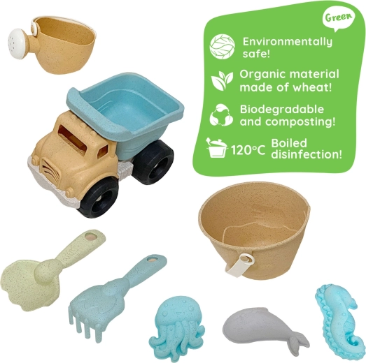 WOOPIE GREEN smilšu komplekts sniedz bērniem stundām ilgu radošu spēli un vecākiem pārliecību par saudzīgu izvēli. Izstrādājums ir izgatavots no organiska, videi draudzīga materiāla uz kviešu šķiedru bāzes, kas dabiski noārdās augsnē un ir kompostējams. Pasteļkrāsas un ergonomiskās formas veicina patīkamu un drošu rotaļu.