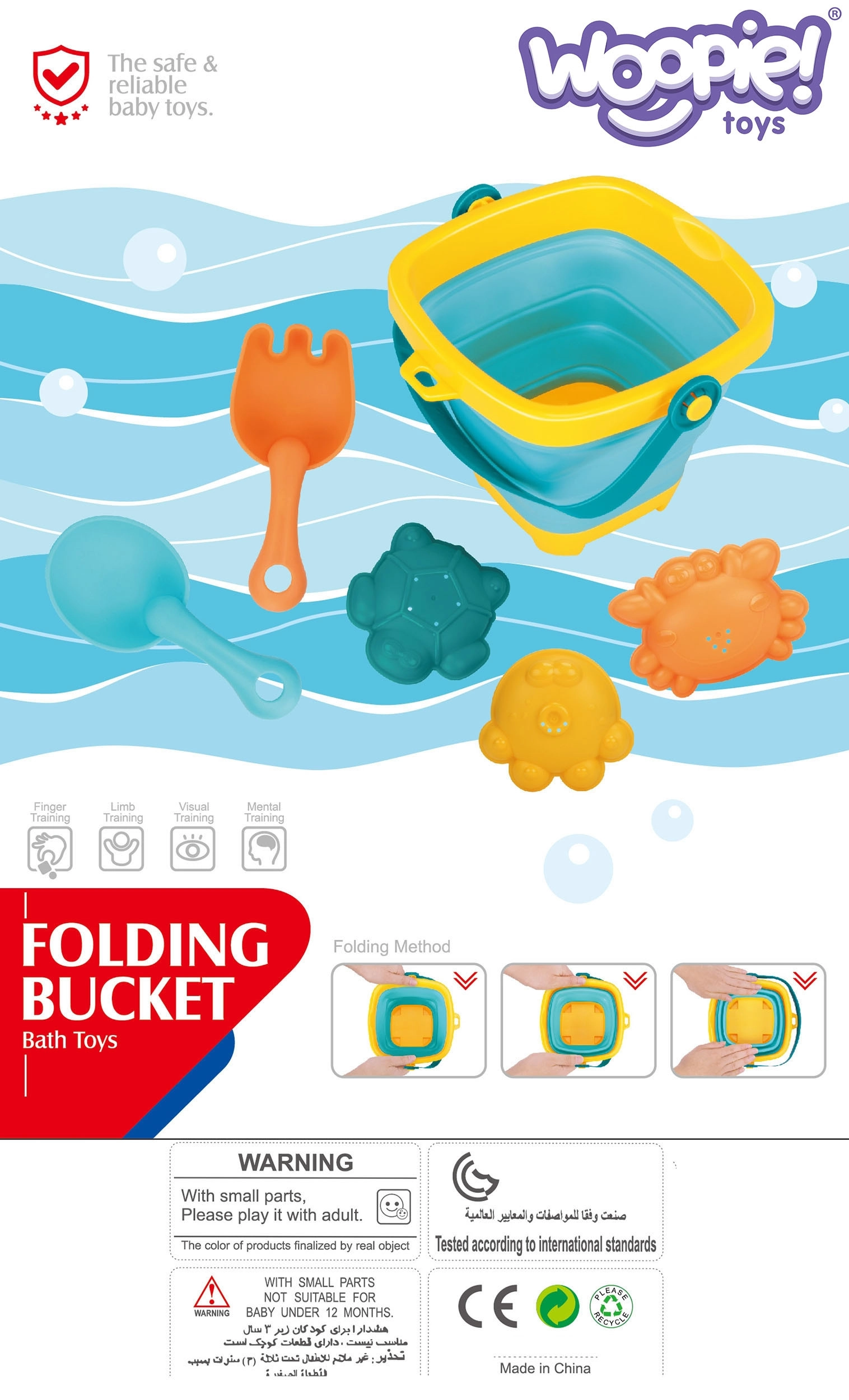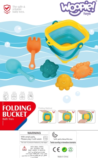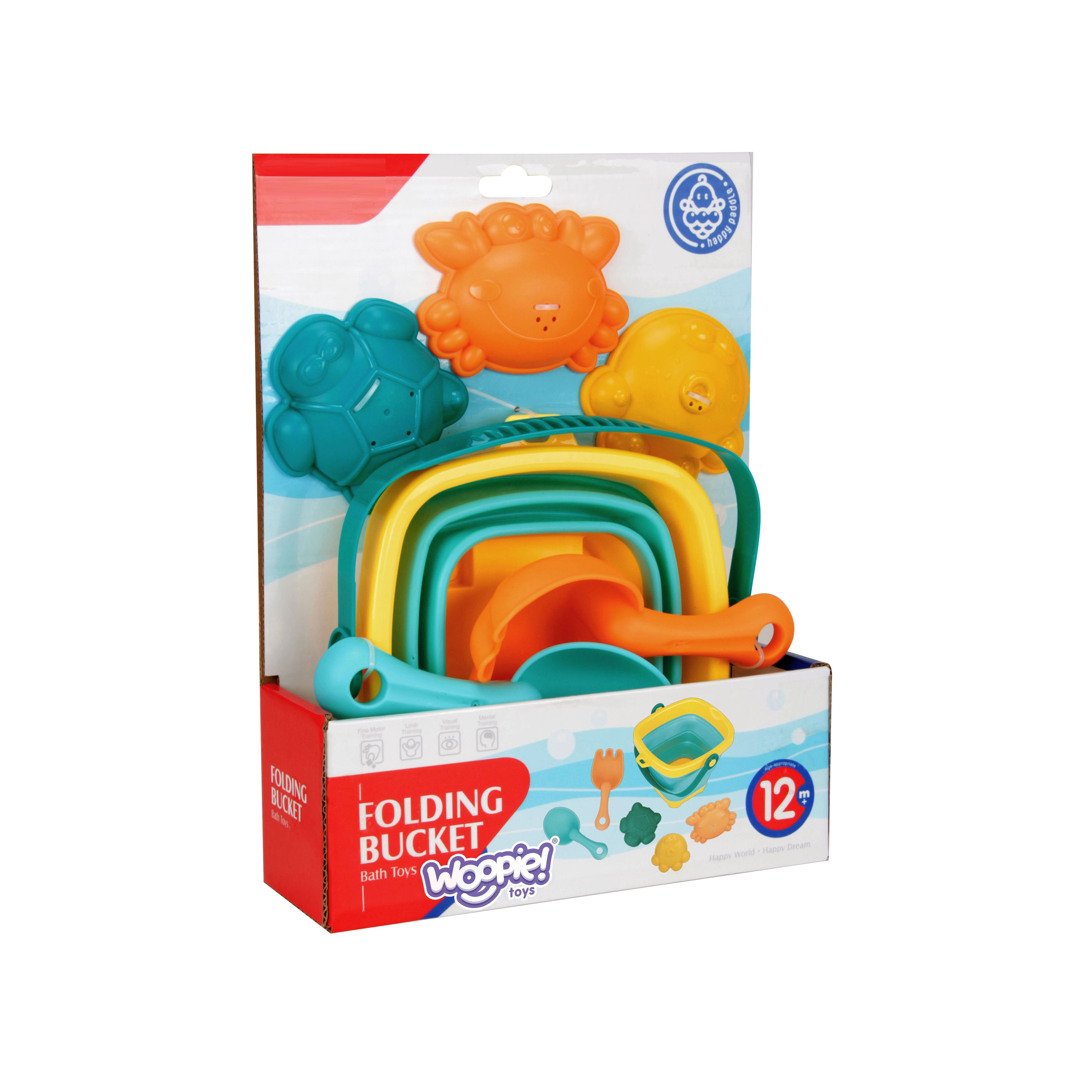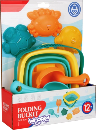 Ar šo košo WOOPIE komplektu bērni izbaudīs bezgalīgu jautrību gan pie ūdens, gan smiltīs. Saliekamais silikona spainis ar plastmasas malu un apakšu pāris mirkļos saplacinās līdz zemam profilam, tāpēc aizņem gandrīz nekādu vietu un viegli ietilpst jebkurā somā. Elastīvie rīki un formiņas ir izturīgākas pret plaisāšanu un ērti piemērotas mazām bērnu rokām.