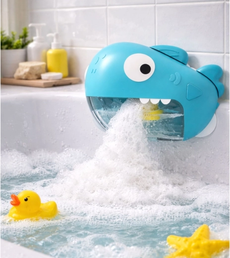 Interaktīva vannas rotaļlieta haizivs formā pārvērš ierasto mazgāšanos priecīgā rituālā. Vienkārši piestipriniet ar piesūcekņiem pie gludas virsmas, piepildiet izņemamo tvertni ar ūdeni un nedaudz dušas želejas, un ar vienu pogas spiedienu aktivizējiet bagātīgu putu veidošanu, kas izplūst no haizivs mutes un priecē bērnus visa peldes laika garumā.