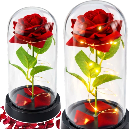 Šī dekoratīvā roze ir lieliska izvēle jubilejām, Valentīndienai, kāzām vai kā mūžīga dāvana, kas pauž mīlestību un pateicību. Pateicoties bateriju barošanai, to var viegli novietot jebkur — bez vadiem un sarežģītas uzstādīšanas.