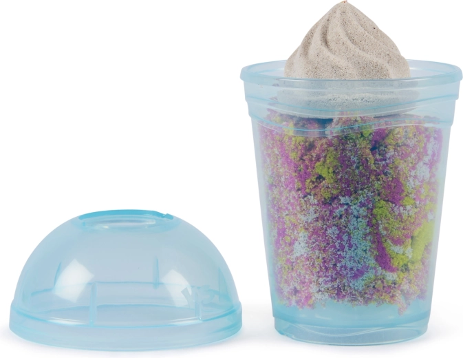 Veidojiet krāsainus smoothie un ledus desertus ar kinētiskajām smiltīm, izmantojot roku mikseri. SPIN MASTER komplektā iekļauts 397 g smilšu 3 krāsās, ar roku darbināms mikseris, 18 formiņas un piederumi, glāzītes un saldējuma formiņas. Kinētiskās smiltis nelīp pie rokām, lieliski notur formu un attīsta sīko motoriku un radošumu bērniem no 5 gadu vecuma.