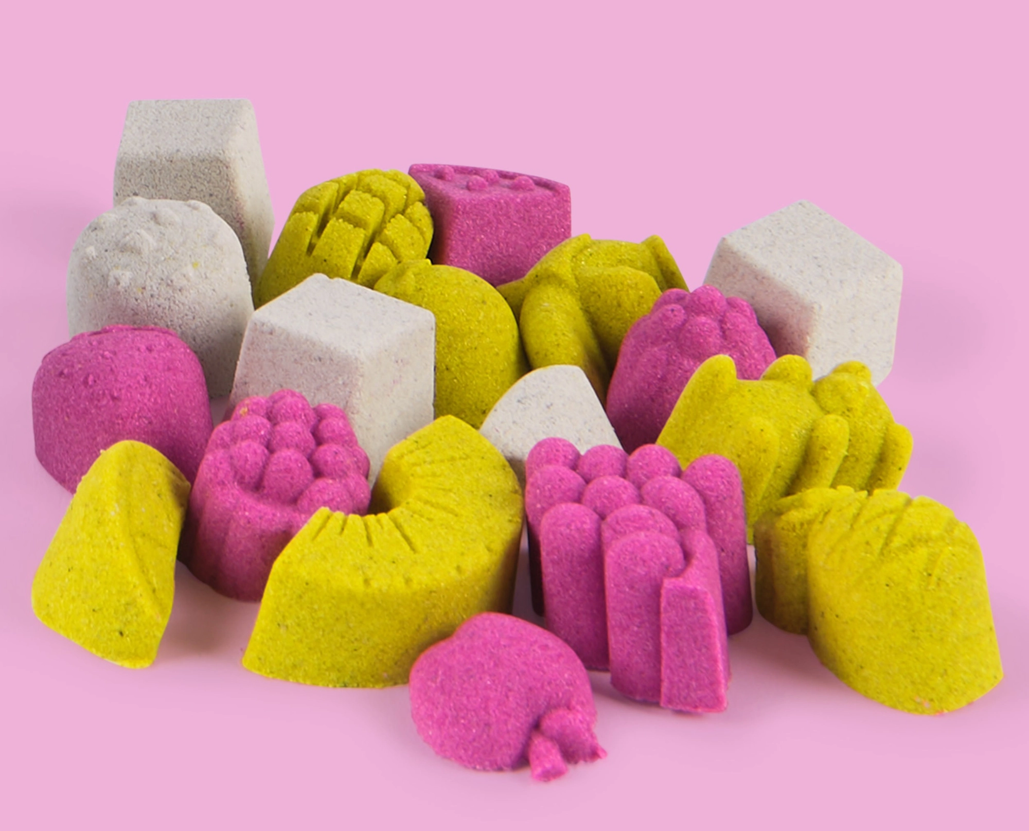 Kvalitatīvās smiltis lieliski atveido formu detaļas, tāpēc bērni viegli veido figūras, glazūras un piederumus. Spēle veicina lomu rotaļas (konditoreja, virtuve, saldējuma kafejnīca), sīko motoriku un sensoro uztveri.