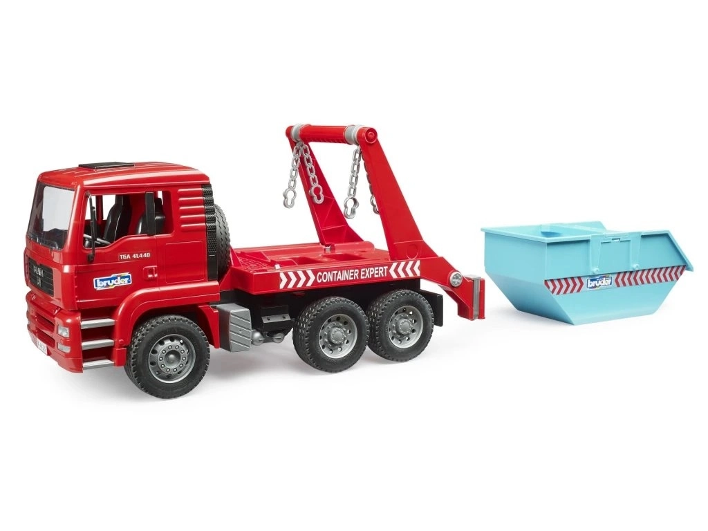 Šis detalizēti izstrādātais MAN TGA modelis bērnu pasaulē ienes autentiskas īsto kravas transportlīdzekļu funkcijas. Konteineru var iekraut un izkraut ar vienu kustību, atbrīvot ķēdes un droši nolikt kravu vajadzīgajā vietā. Atlokāma kabīne atklāj motora bloku un veicina reālistisku spēli.
