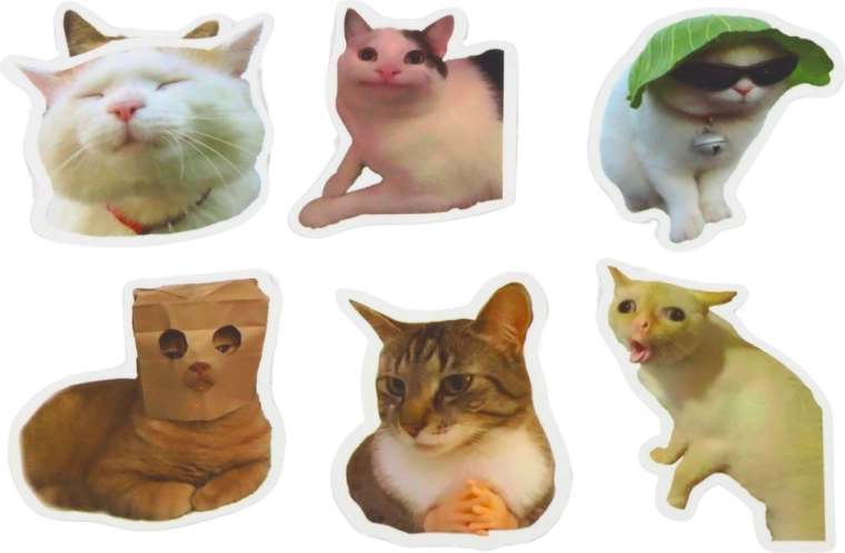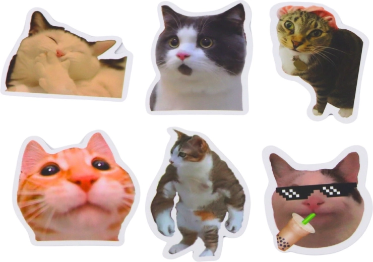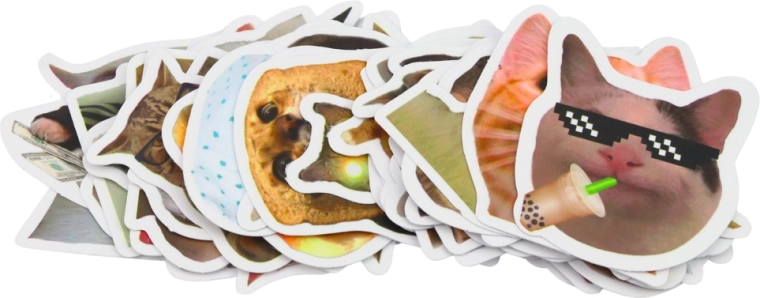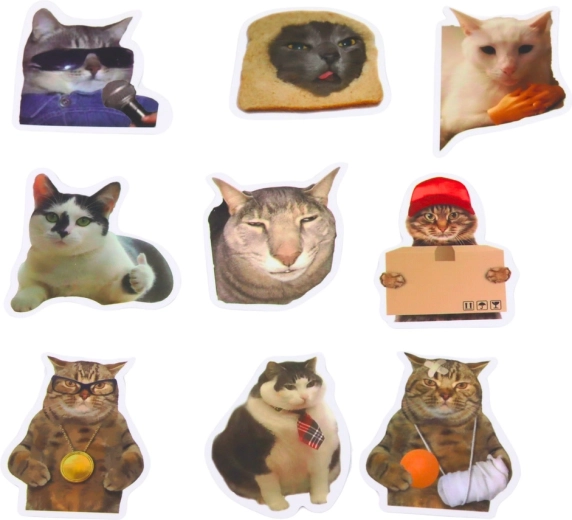 Līdz pat 50 dažādi kaķu mēmu dizaini vienā iepakojumā – kombinējiet, līmējiet, kārtojiet slāņos un radiet bez ierobežojumiem.
