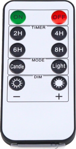 Ieslēdziet, izslēdziet, samaziniet spilgtumu un iestatiet taimeri (2/4/6/8 h) ar vienu pulti – bez nepieciešamības aiztikt pašas sveces.