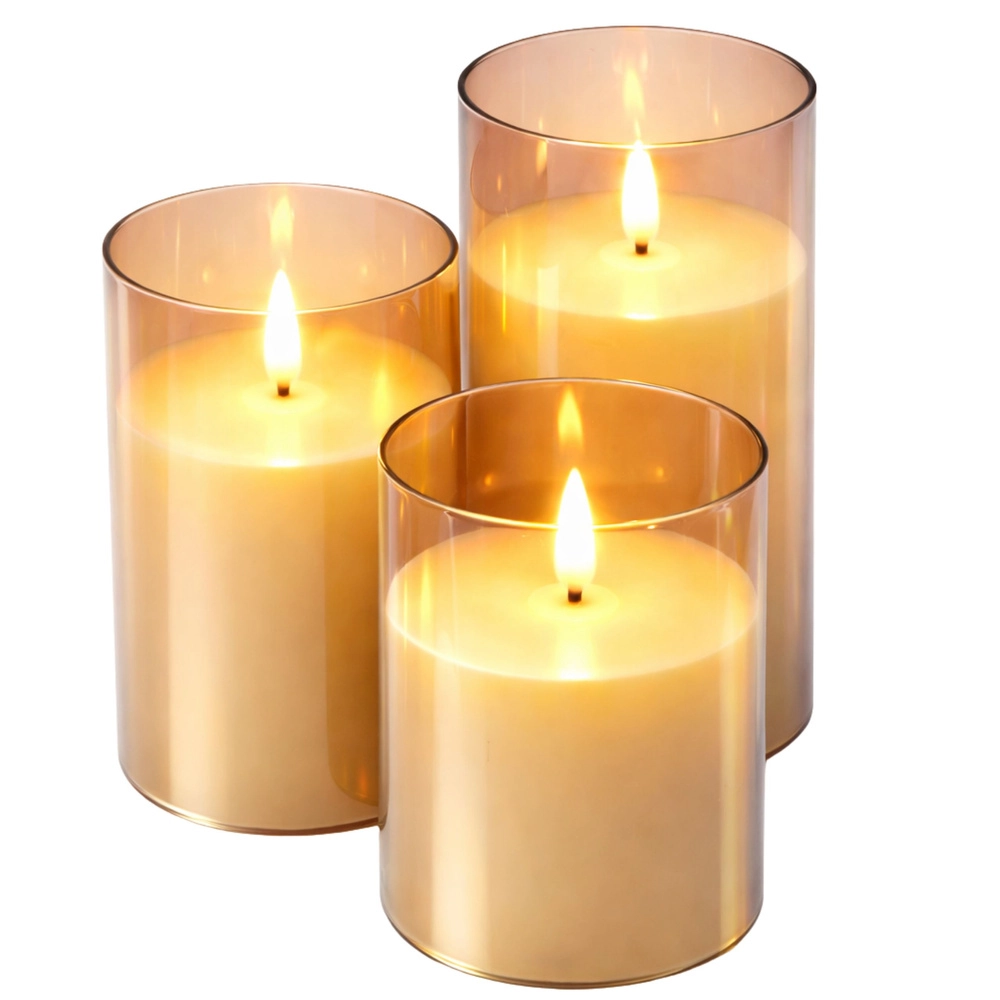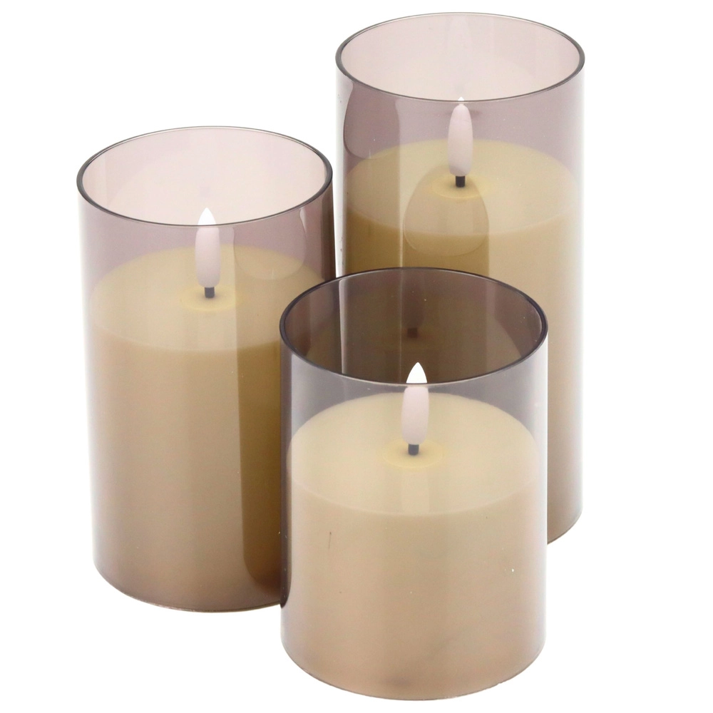 Elegants 3 LED sveču komplekts dažādos augstumos rada patīkamu, siltu atmosfēru bez dūmiem un atklātas liesmas. Pateicoties reālistiskai liesmas imitācijai, taimerim un spilgtuma regulēšanai ar tālvadības pulti, tās ir ideāli piemērotas viesistabai, guļamistabai vai svētku galdam. Drošs risinājums mājām ar bērniem un mājdzīvniekiem.