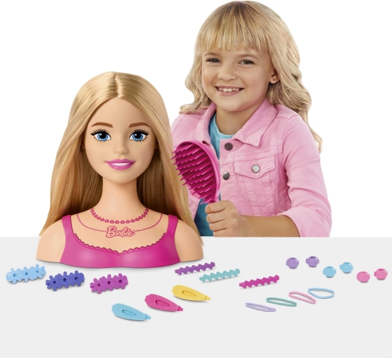 Stilēšanas galva BARBIE ar gariem bloniem matiem ir ideāla mazajiem frizieriem un stilistiem. Pateicoties daudzveidīgajiem aksesuāriem, bērni var veidot neskaitāmas frizūras – vienkāršus astīšu sakārtojumus, pītas bizītes un rotaļīgas, izrotātas kompozīcijas. Iekļautā birste ļauj viegli izķemmēt un sagatavot matus turpmākai veidošanai.