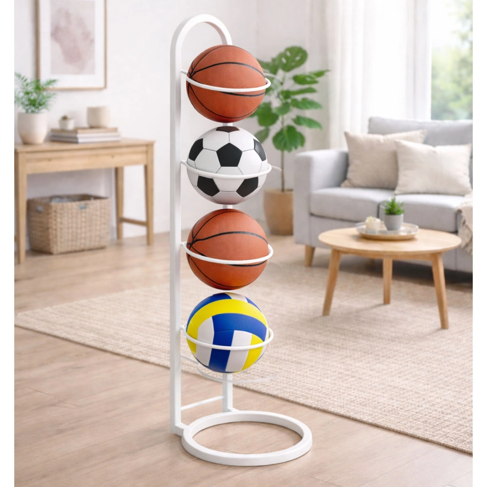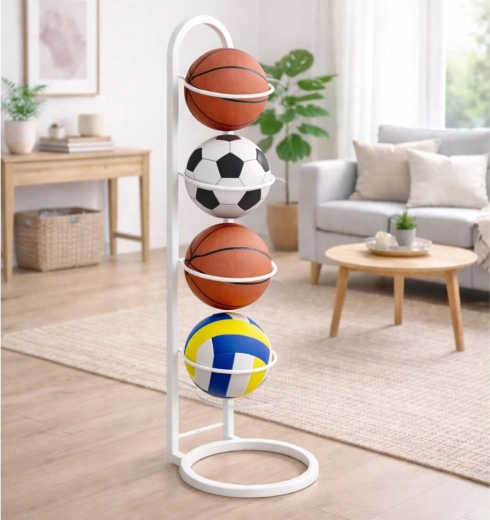 Statīvs ir veidots tā, lai taupītu grīdas platību un vienlaikus nodrošinātu ātru piekļuvi katrai bumbai. Piemērots lietošanai iekštelpās un ārā – uz terases, dārzā vai sporta objektos.