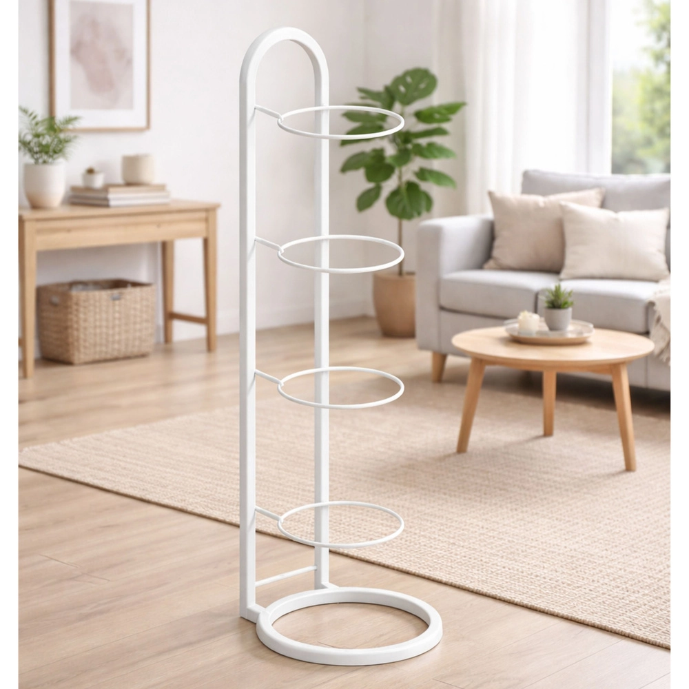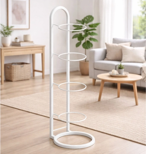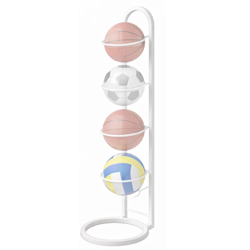 Uzturiet kārtību sporta inventārā ar slaidu statīvu ar 4 atsevišķiem gredzeniem. Stabila apaļa pamatne un izturīgs tērauds nodrošina drošību ikdienas lietošanā – priekšnams, spēļu istaba, mājas trenažieru zāle, skola vai klubs. Baltā krāsa viegli saskaņojas ar mūsdienīgiem interjeriem.