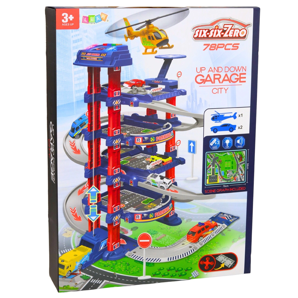 Lielā bērnu autostāvvieta ir radīta mazajiem auto un pilsētas satiksmes cienītājiem. Elektriskais lifts viegli nogādā mašīnītes augstākajos stāvos, no kuriem tās var traukties pa nobrauciena trasi. Komplektā ir arī helikoptera nosēšanās laukums, ceļa zīmes un grīdas spēļu paklājs, kas veido autentisku pilsētvidi.