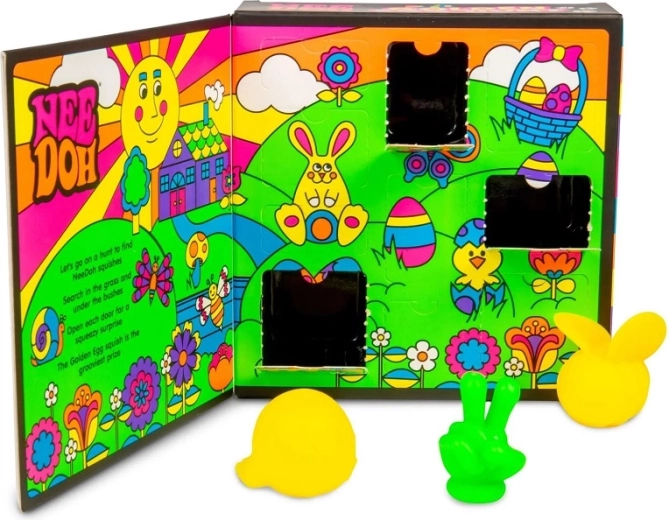Ienesiet mājās Lieldienu meklēšanas burvību. Atverama kastīte ar slepenām durtiņām slēpj 10 spiežamus Teenie NeeDoh pārsteigumus – trušus, bites, ziedus un citus pavasara veidolus. Neiztrūkst arī īpašā zelta ola – vissolītākā dārgumu pērle visā komplektā. Katra figūriņa ir mīksta, elastīga un patīkama taustei – ideāli piemērota spiešanai un stiepšanai kā antistresa palīglīdzeklis.