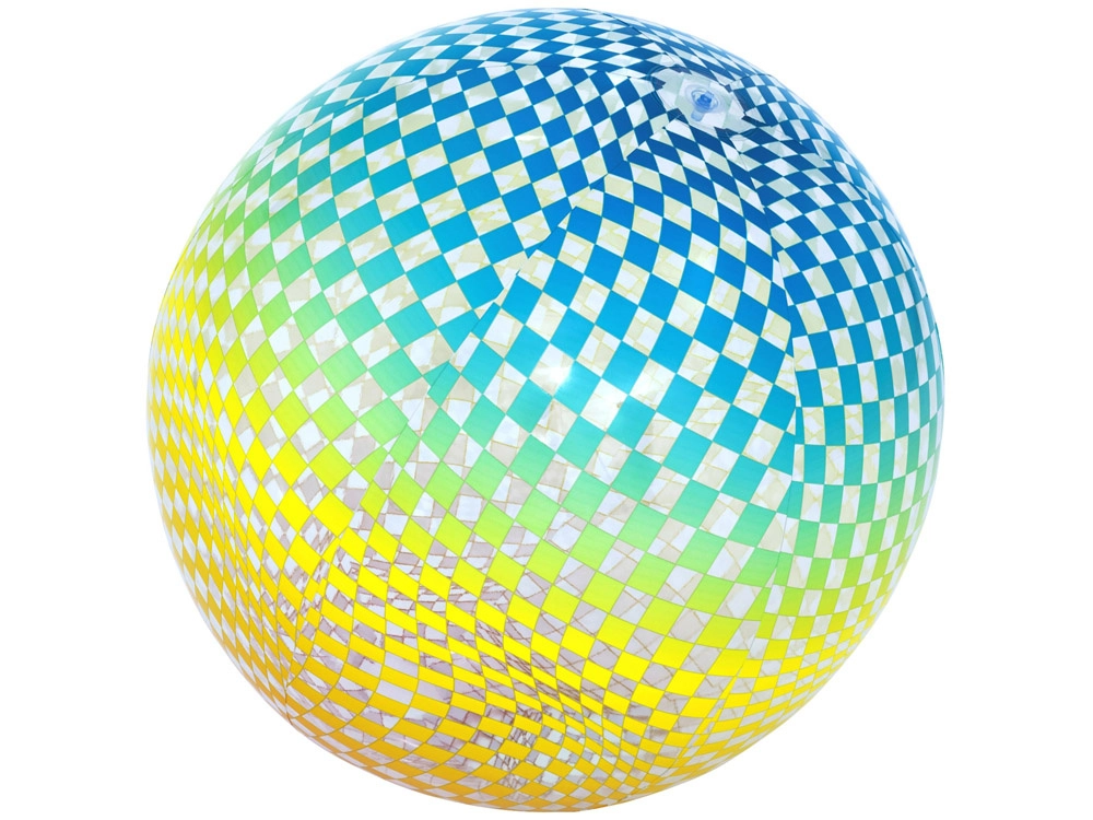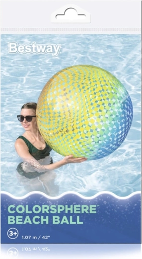 Liela piepūšamā pludmales bumba BESTWAY ColorSphere ar diametru 107 cm sniedz krāsainu izklaidi baseinā un pludmalē. Pateicoties vieglajam vinilam, vienkāršai piepūšanai un izturīgai konstrukcijai, tā ir ideāli piemērota bērniem no 3 gadu vecuma un pieaugušajiem. Izteiktais rūtainais raksts nodrošina labu redzamību un vēl vairāk aicina uz kopīgām spēlēm gan ūdenī, gan uz sauszemes.