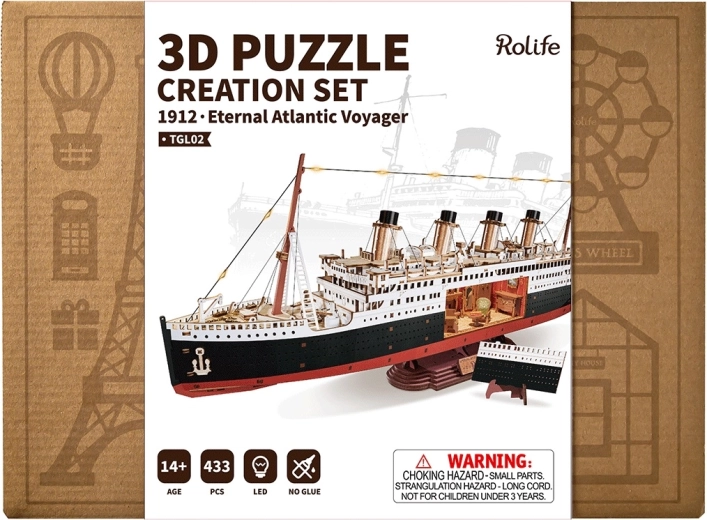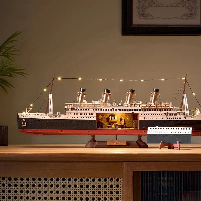 Šis dizaina DIY komplekts piedāvā reālistisku leģendārā okeāna laineru modeli ar precīzām proporcijām, četriem skursteņiem un bagātīgi izstrādātiem klājiem. Pateicoties noņemamajam sānu panelim var ieskatīties kajītēs un gaiteņos, savukārt siltā LED gaisma izceļ interjera un eksterjera detaļas. Pabeigts modelis kalpo kā stilīga dekorācija viesistabai, kabinetam vai studentu istabai.