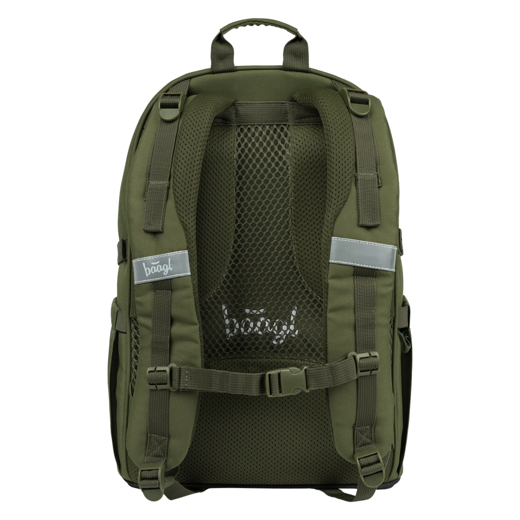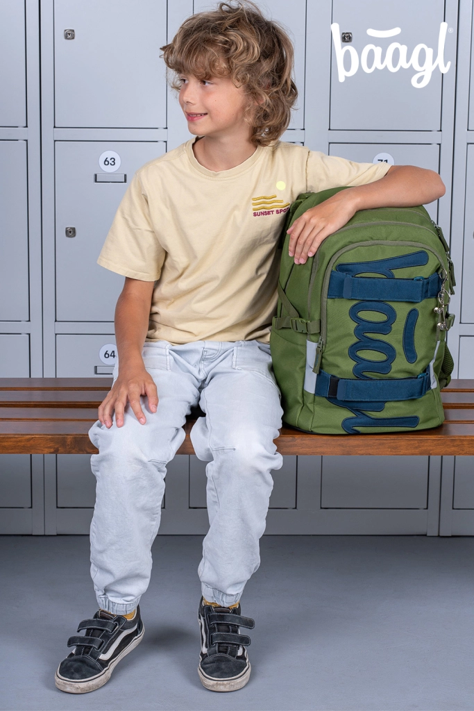 BAAGL Skate Olive GRS ir moderna skolas mugursoma, kas radīta ikdienas ērtībai un drošībai. Pateicoties svaram zem 900 g un anatomiski veidotai muguras daļai ar jostasvietas pastiprinājumu, tā lieliski pieguļ bērnam un saudzē muguru. Trīs atsevišķas kameras ar praktisku organizētāju palīdz uzturēt mācību grāmatas, burtnīcas un sīkumus pārskatāmi savās vietās, savukārt polsterētā kabata droši ievieto 15" klēpjdatoru vai planšeti.