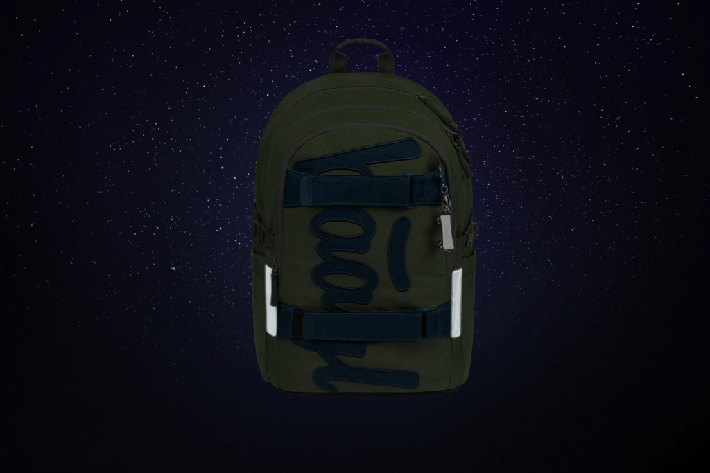 Vieglā un izturīgā skolas mugursoma BAAGL Skate Olive GRS ir ideāla skolēniem no 3. klases. Tā piedāvā anatomiski veidotu muguras daļu, 3 ietilpīgas nodalījumu kameras, polsterētu kabatu 15" klēpjdatoram, siksnas skeitborda piestiprināšanai un virkni atstarojošu elementu drošībai. Izgatavota no pārstrādāta, ūdensnecaurlaidīga materiāla ar kvalitatīvām YKK rāvējslēdzējām.