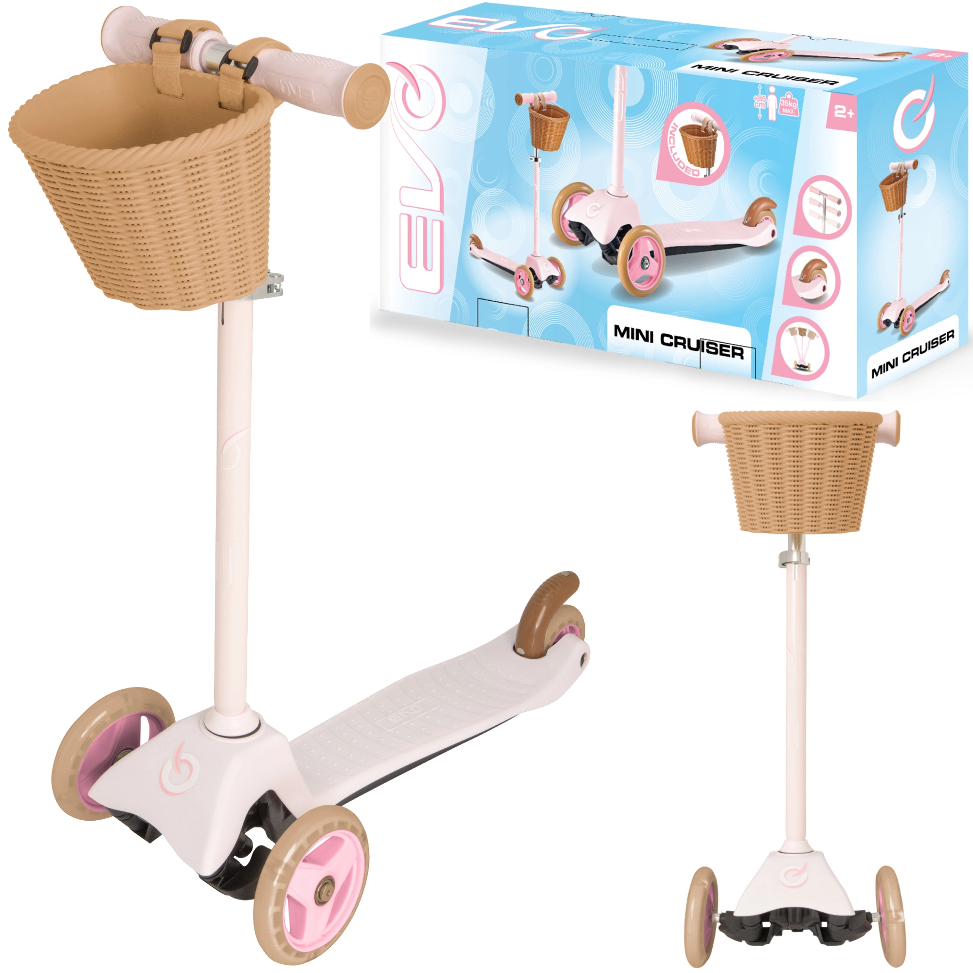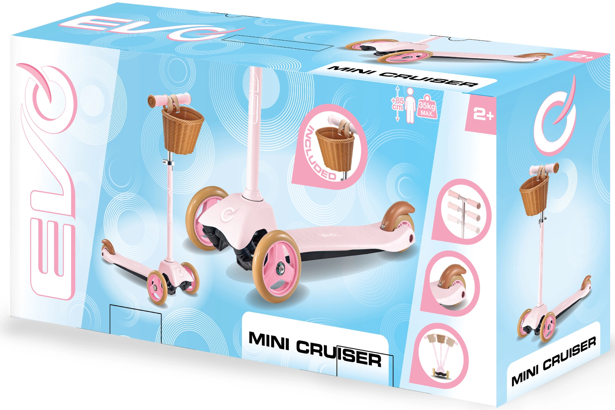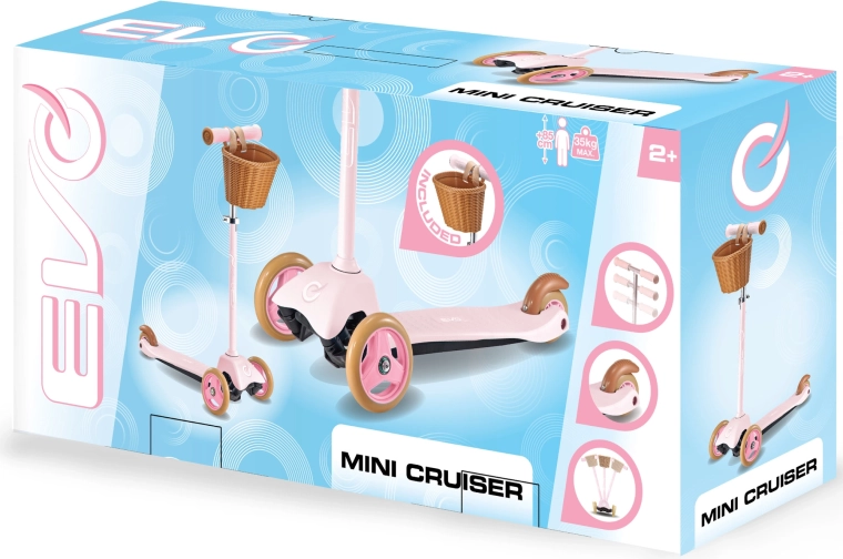 Rozā skrejritenis EVO Mini Cruiser ir ideāls pašiem mazākajiem braucējiem no 2 gadu vecuma. Pateicoties trim riteņiem, platai un stabilai platformai un aizmugures kāju bremzei, bērni droši un jautri apgūst līdzsvaru un koordināciju. Augstumā regulējamais stūres balsts aug līdzi bērnam, bet noņemamais groziņš noder sīkumu pārvadāšanai.