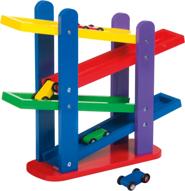 Koka autodroms ar trim krāsainām mašīnītēm nodrošina bezgalīgu izklaidi, pateicoties vienkāršai apvēršanai pa krāsainām kaskādes trasēm.
