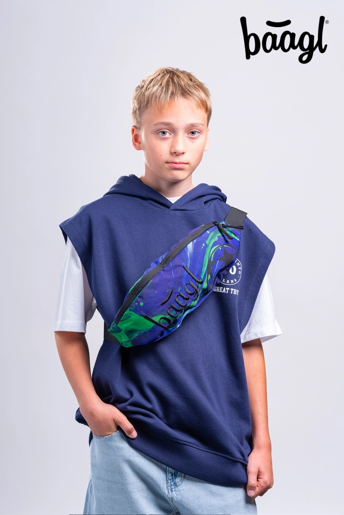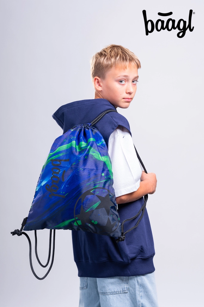 Pilns skolas aprīkojums vienotā sportiskā dizainā: komplekts BAAGL CORE FOOTBALL CHAMPION ietver vieglu ergonomisku mugursomu ar kabatu 15" klēpjdatoram, ietilpīgu penāli, praktisku apavu maisiņu, stilīgu jostas somu un izturīgu datora maciņu. Izgatavots no pārstrādātiem ūdensnecaurlaidīgiem materiāliem ar GRS sertifikāciju, kvalitatīviem YKK rāvējslēdzējiem un drošības atstarojošiem elementiem.