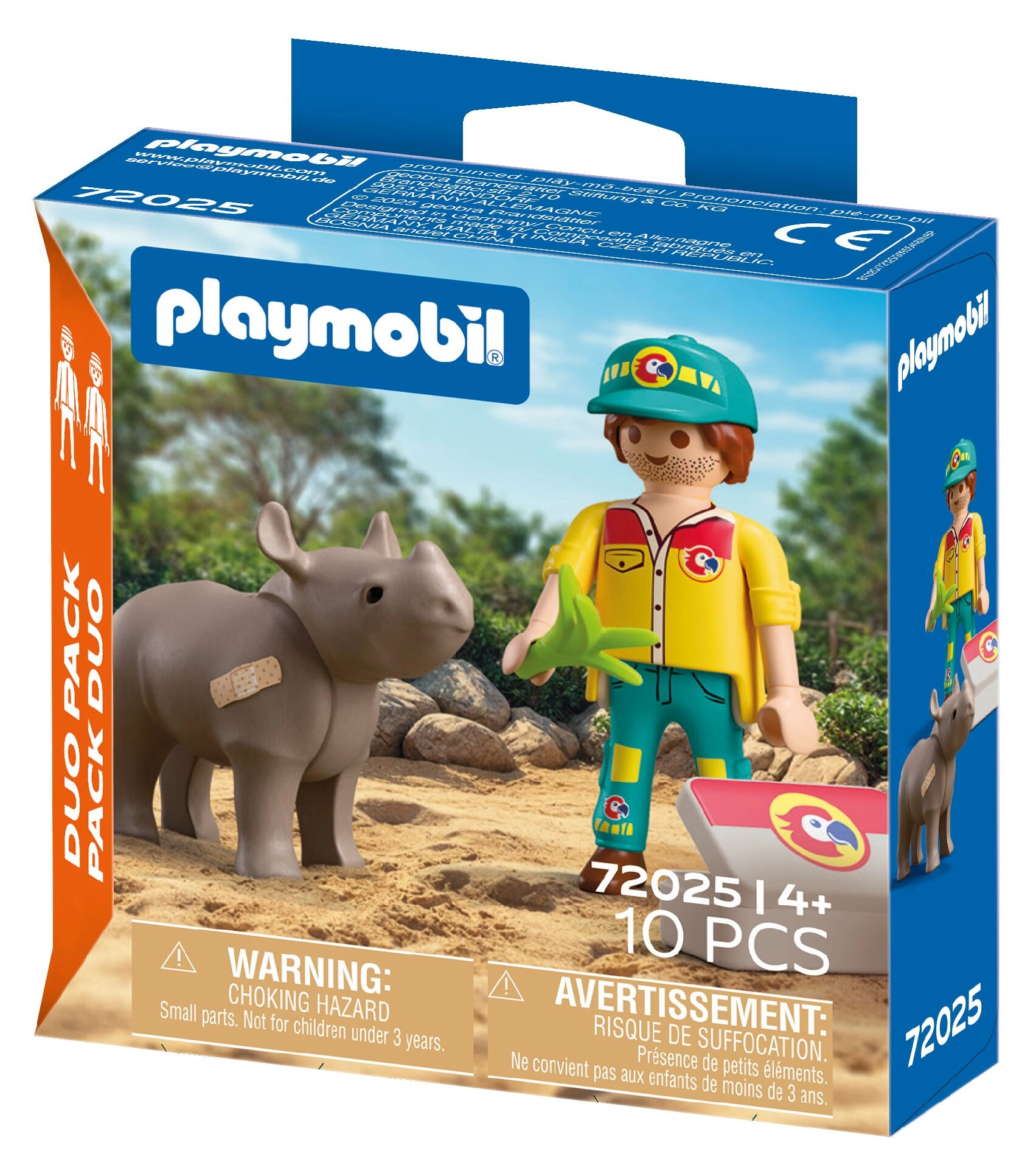 Atklājiet jautro PLAYMOBIL Duo Pack komplektu, kurā bērni kļūst par gādīgu kopēju un palīdz degunradzim atveseļoties ar reālistiskiem piederumiem. Komplekts veicina radošu rotaļu, empātiju pret dzīvniekiem un lieliski paplašina Playmobil pasauli. Iekļauta kopēja figūriņa, degunradzis un medicīniskie piederumi vēl autentiskākiem piedzīvojumiem.