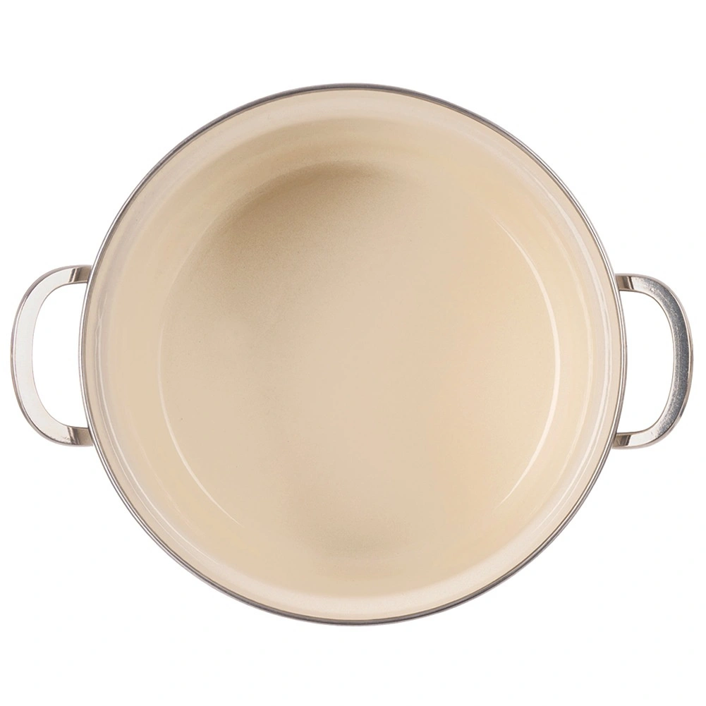 Izvēlieties laikmetīgu dizainu un praktiskumu. Šis krēmkrāsas emaljētais katls Maki lieliski der ikdienas vārīšanai, sautēšanai un pasniegšanai tieši uz galda. Izturīgais emaljētais tērauds nodrošina vienmērīgu siltuma sadali un vieglu kopšanu, savukārt nerūsējošā tērauda malas un rokturi palielina izturību un komfortu lietošanā.