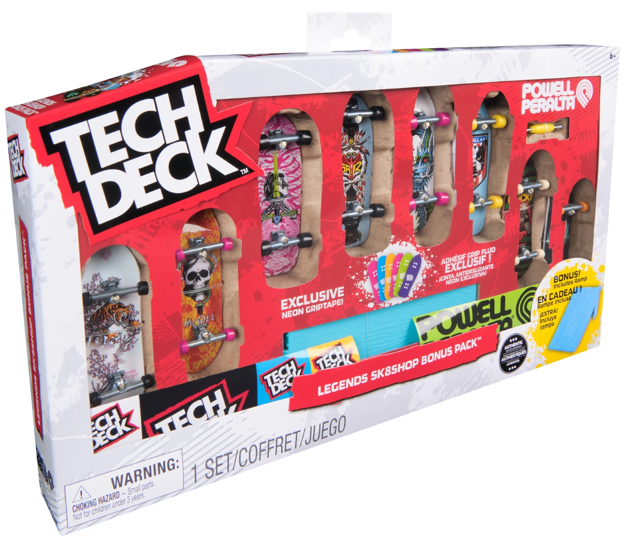 Atklājiet pirkstu skeitbordinga pasauli ar leģendāro zīmolu TECH DECK, kas jau vairāk nekā 20 gadus iedvesmo fanus visā pasaulē. Šis ekskluzīvais Legends Sk8shop Bonus Pack komplekts piedāvā 8 gatavus pirkstu dēļus ar košiem dizainiem un neona rampu lēcieniem un trikiem.