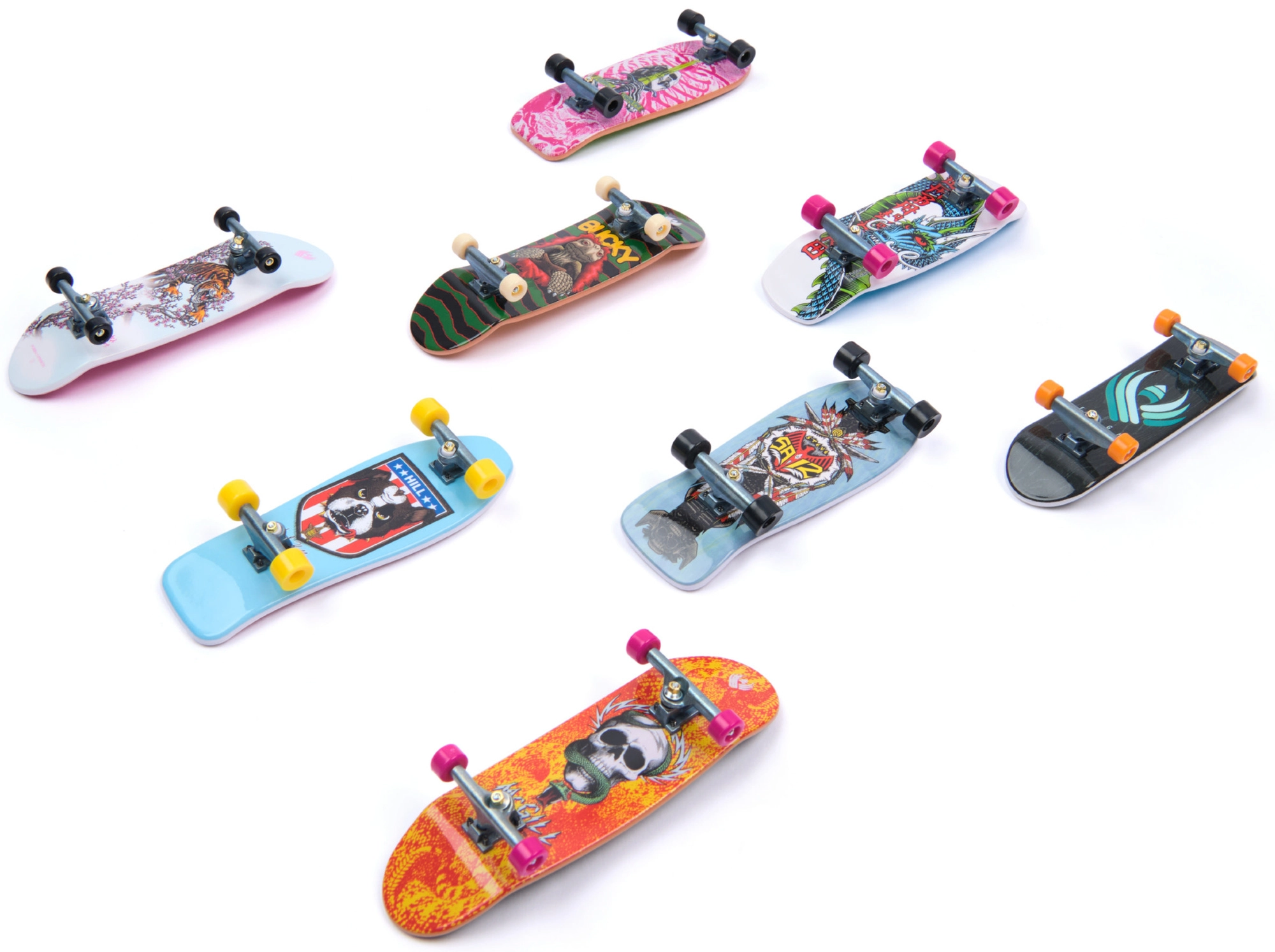 Komplektā ietilpst astoņi pilnībā salikti pirkstu dēļi ar košiem krāsainiem apdrukām un reālistiskiem trekiem un riteņiem. Lieliski gan kolekcijai, gan ikdienas braukšanai.