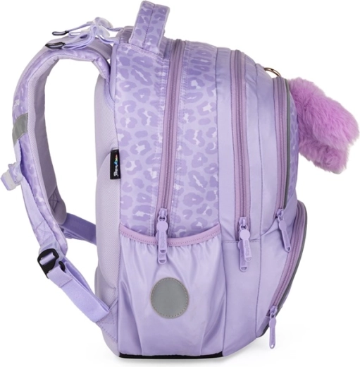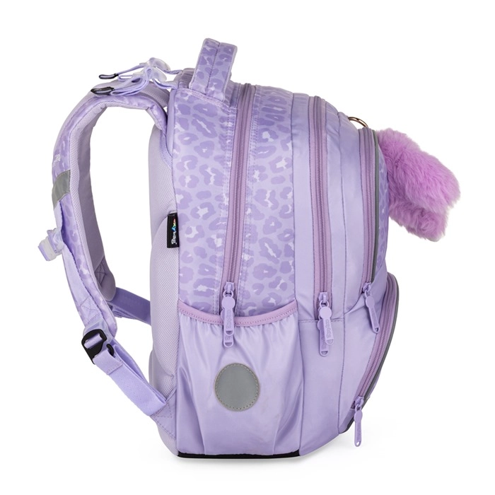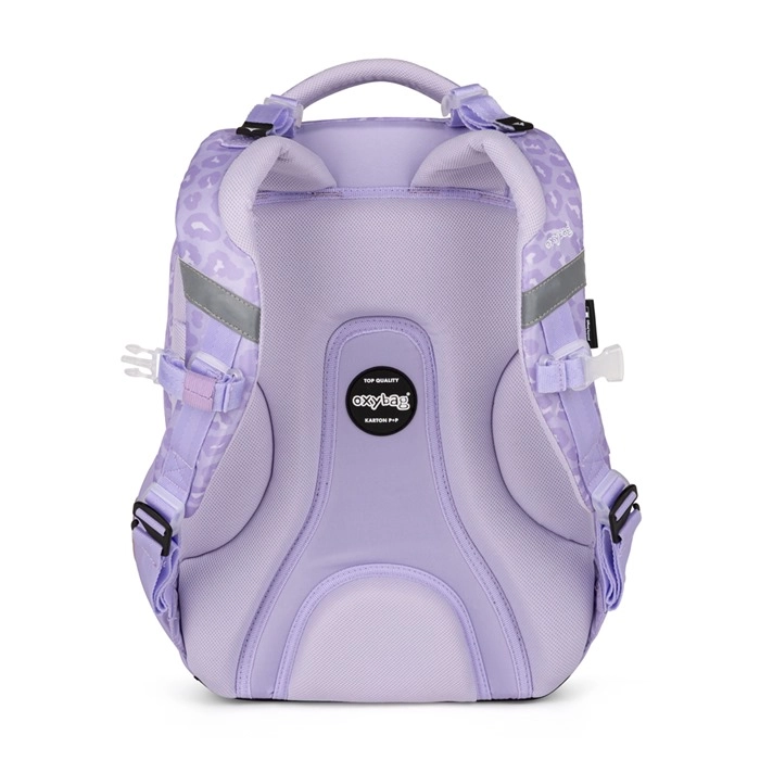 Praktisks trīsdaļīgs skolas komplekts OXY NEXT Bunny maigi lavandas krāsā apvieno ietilpīgu mugursomu, lielu penāli un vieglu maisiņu sporta tērpam. Mugursomai ir anatomiski veidota muguras daļa, polsterētas plecu lences un krūšu siksna ērtai un veselīgai nēsāšanai. Tā piedāvā daudz kabatu un organizētāju, sānu kabatas pudelītei, atslēgu/čipa turētāju un atstarotājelementus drošībai. Pastiprināts ūdensnecaurlaidīgs dibens pasargā saturu arī nelabvēlīgos laikapstākļos.