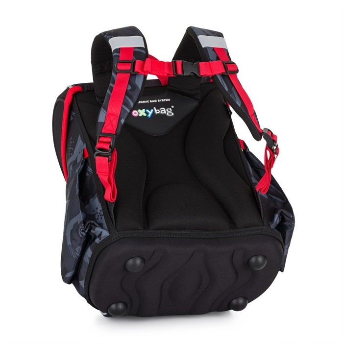 Anatomiski veidota muguras daļa, elpojošs polsterējums un platas mīkstinātas siksnas nodrošina ērtu un pareizu aktovkas novietojumu uz bērna muguras.