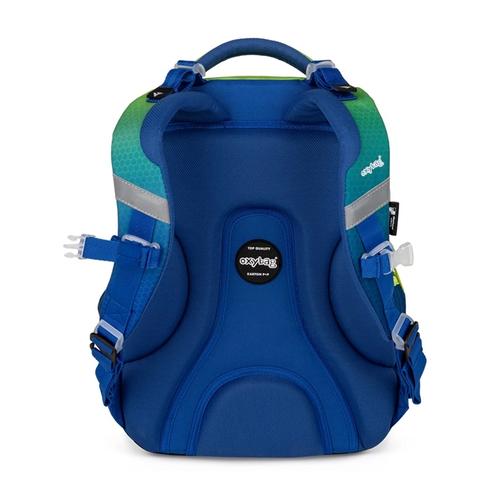 Praktisks skolas komplekts 2.–4. klases skolēniem ietver ergonomisko mugursomu OXY NEXT, ietilpīgu penāli un maisiņu sportam. Mugursomai ir anatomiski veidota aizmugure, polsterētas lences ar krūšu siksnu, atstarojoši elementi un daudzas kabatas perfektai organizācijai. Izturīgs necaurlaidīgs dibens, viegla konstrukcija un moderns ombre dizains zilzaļos toņos nodrošina komfortu un drošību katru skolas dienu.