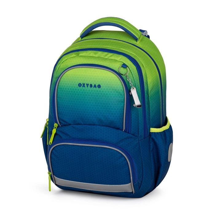 Pārdomātā organizācija ietver vairākus nodalījumus un kabatas, tostarp divas ietilpīgas sānu kabatas un turētāju atslēgām/skolas čipam, lai nekas nepazustu. Komplektu papildina ietilpīgais penālis OXYBAG un vieglais maisiņš sportam saskanīgā ombre dizainā – ideāli rakstāmpiederumiem un sporta tērpam.
