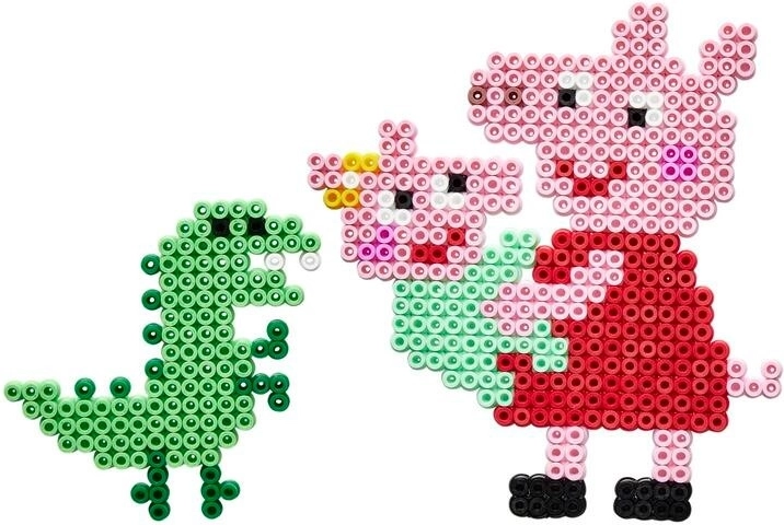 Ar Peppa Pig dāvanu kasti bērni viegli izveidos savus varoņus no iemīļotā seriāla. Pateicoties pilnam piederumu komplektam, veidošana ir intuitīva un droša – pietiek izkārtot pērlītes uz pamatnes pēc parauga un ar gludināšanu nostiprināt motīvu.