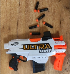 Izbaudiet dinamisku izklaidi ar NERF Ultra AMP blāsteri, kas apvieno motorizētu piedziņu ātrai šaušanai, ergonomisku rokturi drošam satvērienam un integrētu tēmēkli labākai precizitātei. Kompaktais dizains atvieglo lietošanu gan bērniem, gan pieaugušajiem.