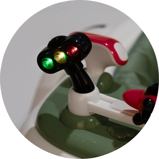 Drošība pirmajā vietā: stabila pamatne, pret-slīdes paliktņi, drošības atdures, bloķējami riteņi un iespēja regulēt ātrumu ar riteņu regulatoru. Regulējams augstums pielāgojas bērna augumam un nodrošina komfortu arī ilgākas lietošanas laikā. Gaismas un mūzikas efektiem nepieciešamas baterijas (nav iekļautas komplektā).
