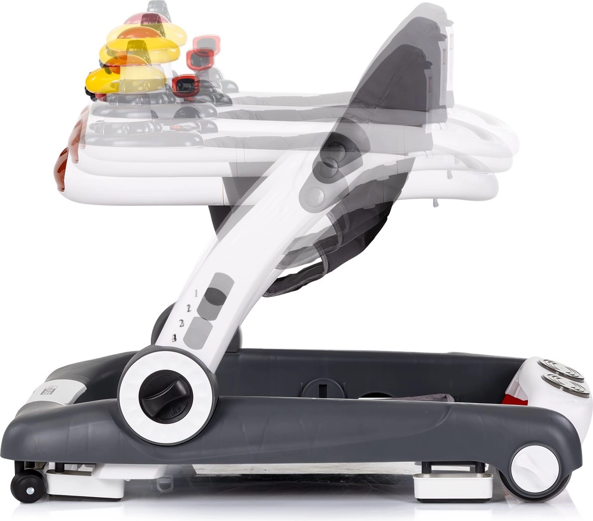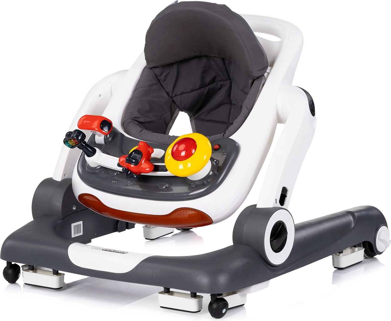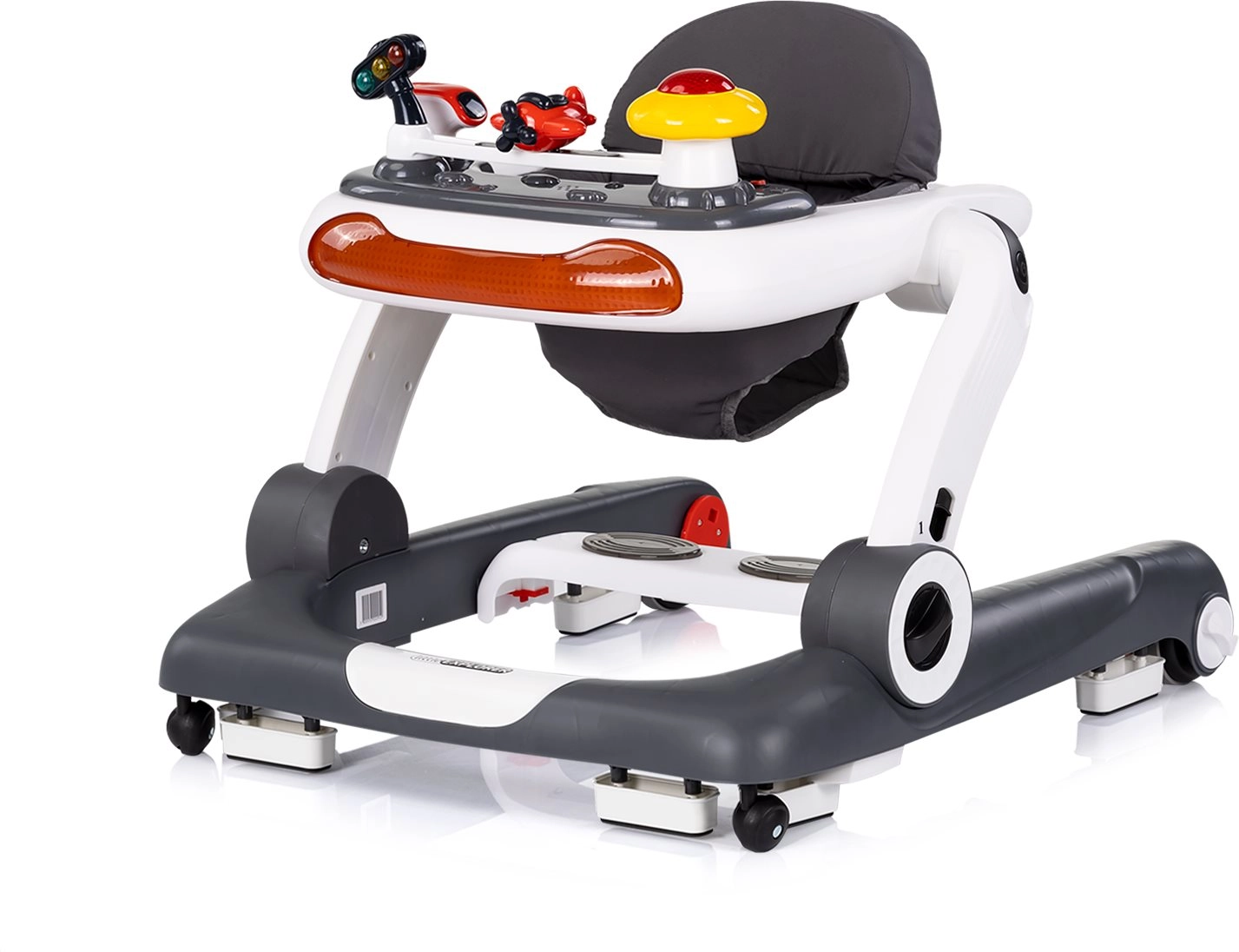 CHIPOLINO Little Explorer ir praktisks un aizraujošs staigulis, kas aug kopā ar jūsu bērnu. Pateicoties 4in1 konstrukcijai, tas piedāvā staiguļa režīmu, spēļu centru, vieglu lēkāšanas režīmu muskuļu stiprināšanai un stumjamo/riteņmašīnas funkciju patstāvīgas staigāšanas atbalstam. Interaktīvais panelis ar gaismām, mūzikas pogām un kustīgām rotaļlietām stimulē maņas un attīsta sīko motoriku.