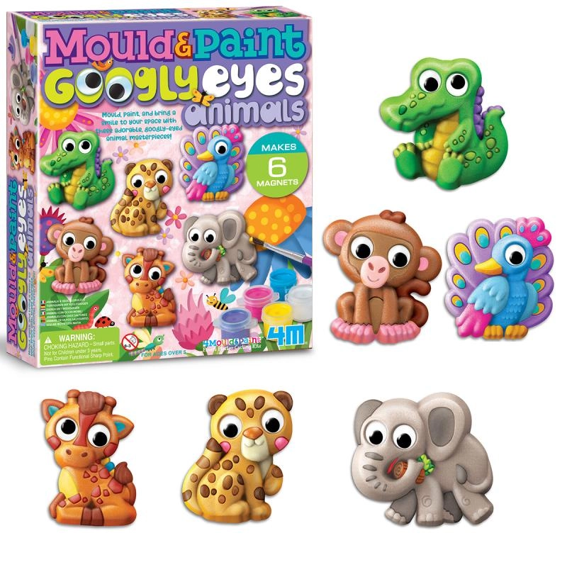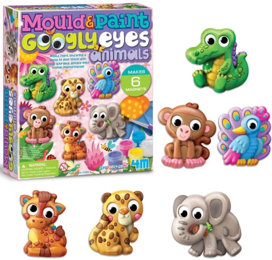 Bērni izgatavos līdz 6 oriģināliem magnētiņiem – piemēram, ziloni, mērkaķīti, pāvu, žirafi, leopardu vai krokodilu. Kustīgās acis piešķir katram darbam rotaļīgu izteiksmi, un gatavās dekorācijas kļūs par iemīļotu bērnistabas akcentu.
