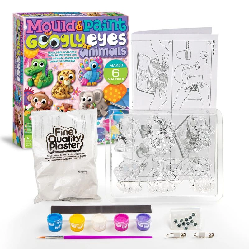 Formiņas, kvalitatīvs ģipsis, krāsas, ota, magnēti un detalizēta instrukcija – vienkārši atveriet un sāciet veidot bez papildu pirkumiem.