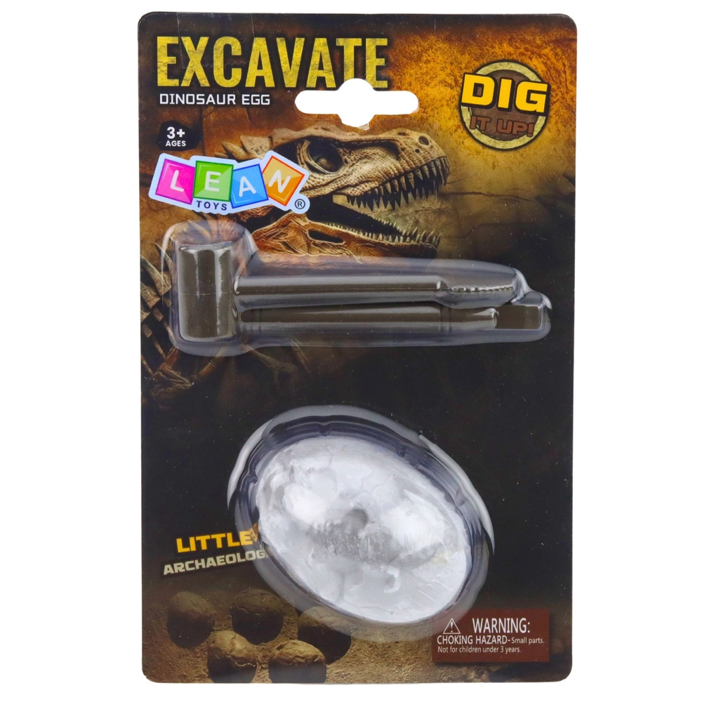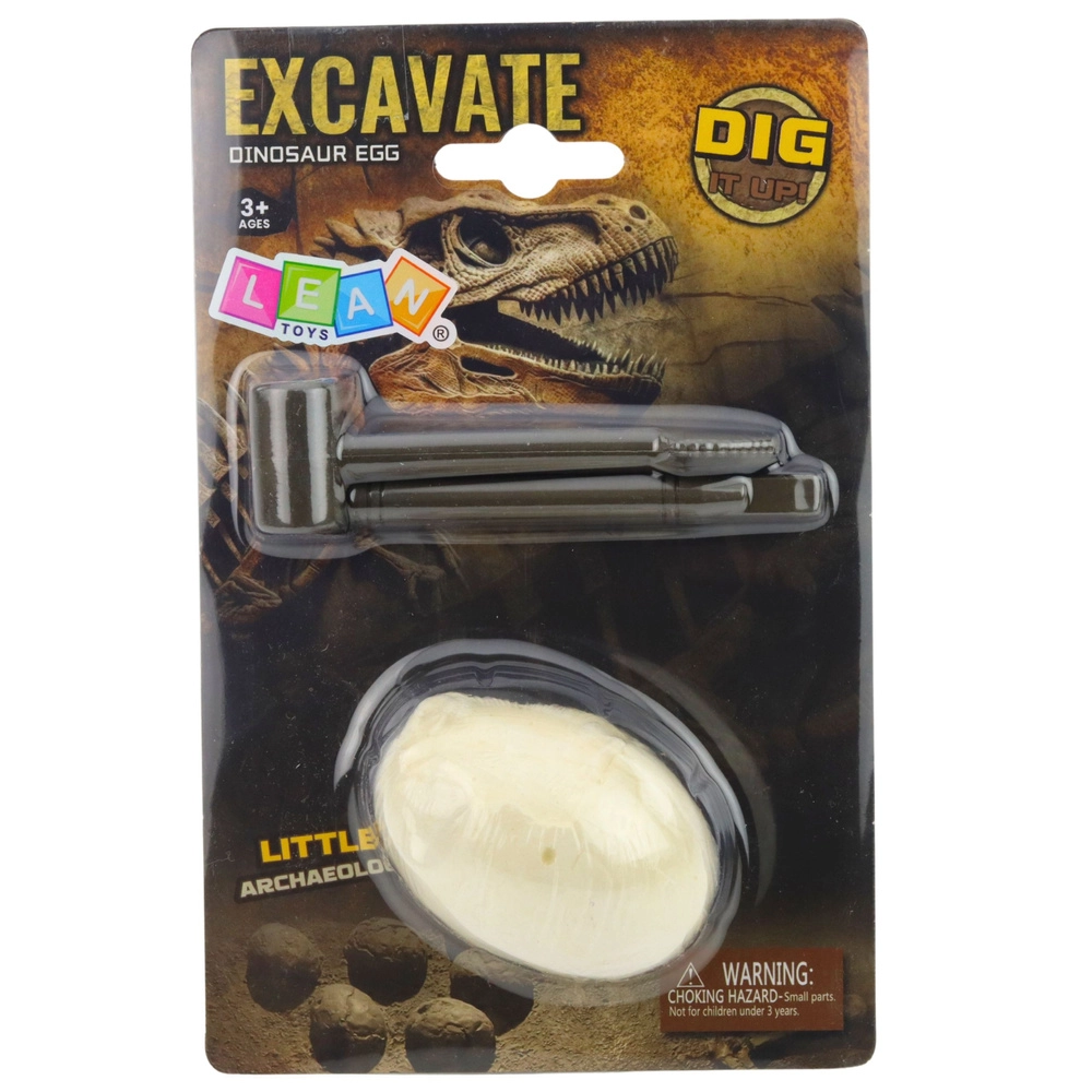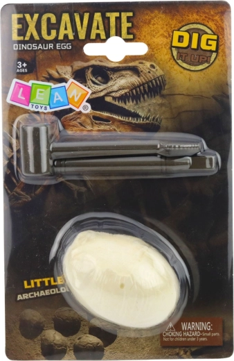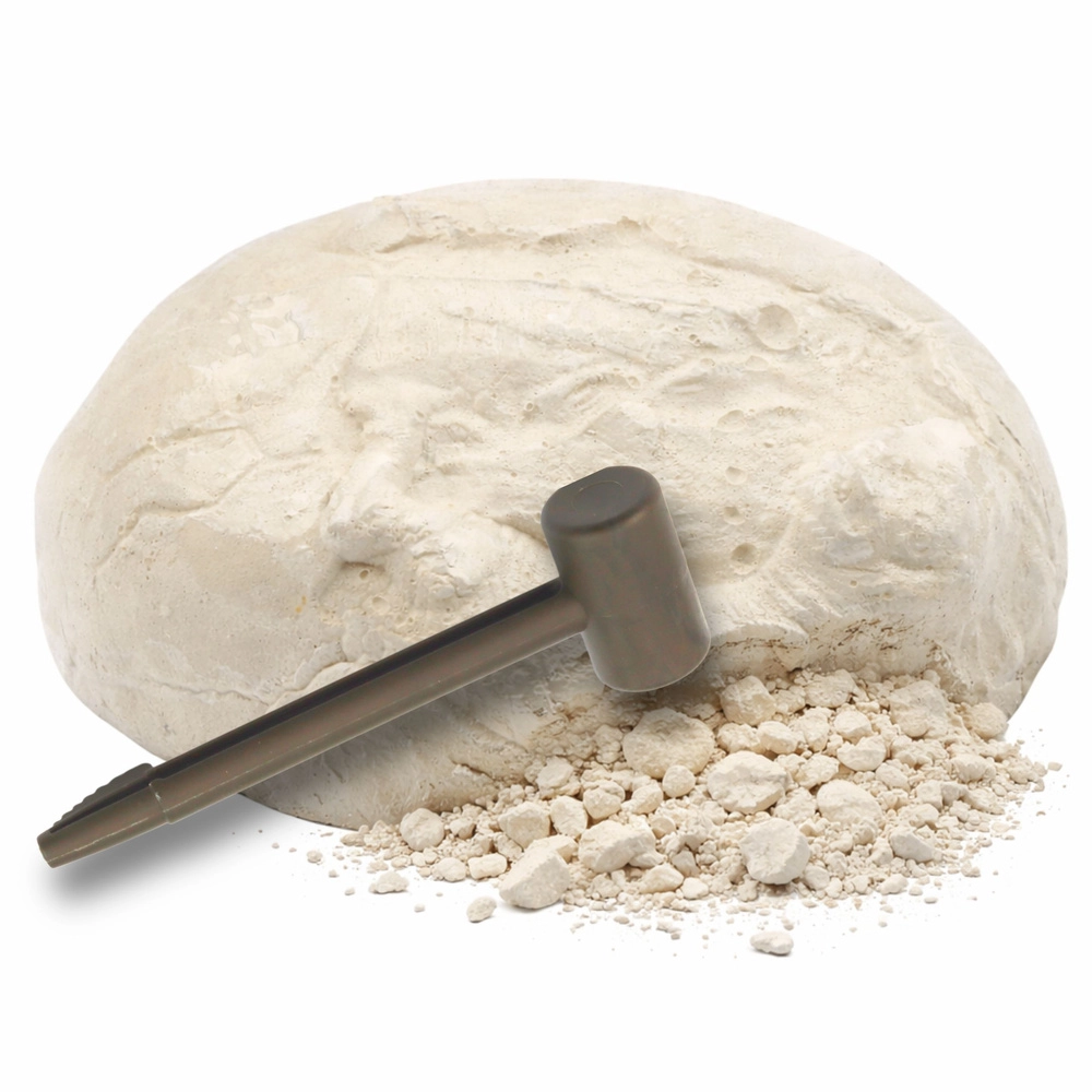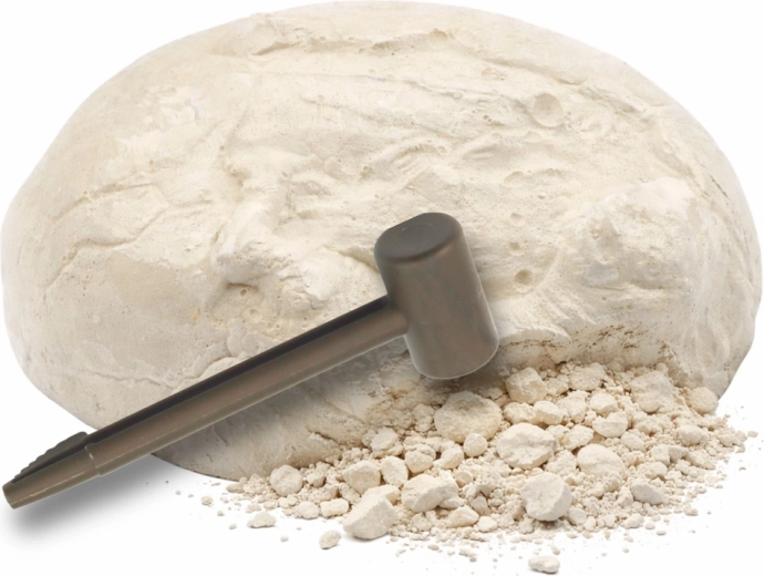 Šis interaktīvais arheoloģijas komplekts ļauj bērniem kļūt par maziem paleontologiem. Uzdevums ir pakāpeniski atklāt dinozaura figūriņu, kas paslēpta apmetuma olā, izmantojot komplektā iekļauto kaltiņu un āmuriņu. Pietiek olu uz pāris minūtēm iemērkt, ļaut materiālam mīkstināties un pēc tam uzmanīgi noņemt “iežu” slāņus.