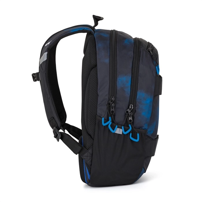 Iekšējā telpa ir pārdomāti organizēta: divas galvenās kameras ietilpina grāmatas un mapes, pastiprinātā kabata droši aizsargā klēpjdatoru, mazāka kabata un karabīne palīdz uzturēt kārtību sīklietās. Praktiskā slēptā kabata muguras pusē noslēps vērtslietas, bet sānu kabata paredzēta pudelvei. Atstarojošie elementi palielina redzamību ceļā uz skolu un mājup.
