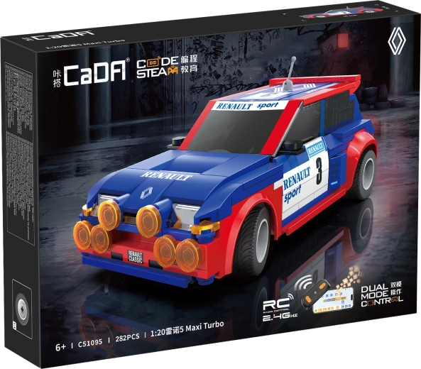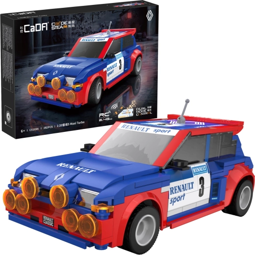 Uzceliet ikonisko sacīkšu auto RENAULT 5 Maxi Turbo no CaDA un vadiet to attālināti. Kompaktais modelis mērogā 1:20 piedāvā duālu vadību ar 2,4 GHz pulti vai Bluetooth lietotni, vadības darbības rādiuss ir 20+ metri un ātrums līdz 3,8 km/h. Lieliska dāvana gan mazajiem, gan lielajiem būvētājiem, kas attīsta sīko motoriku, radošumu un pacietību.